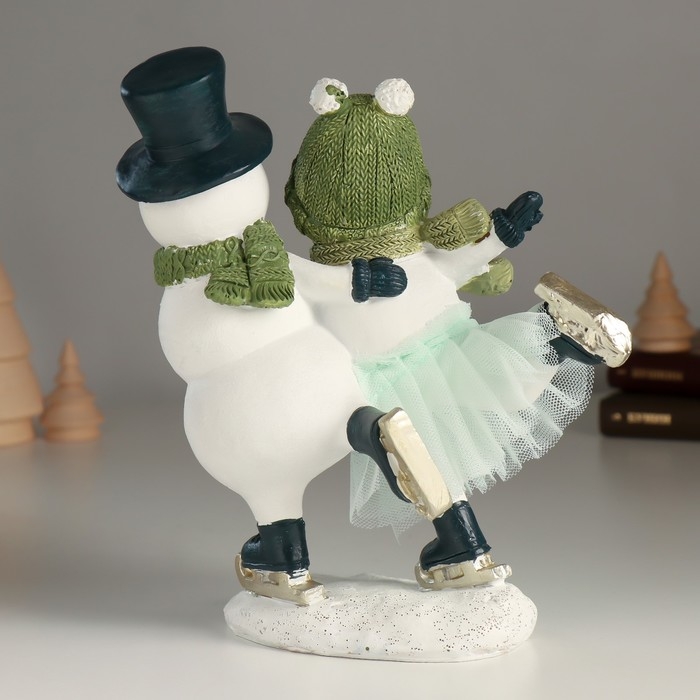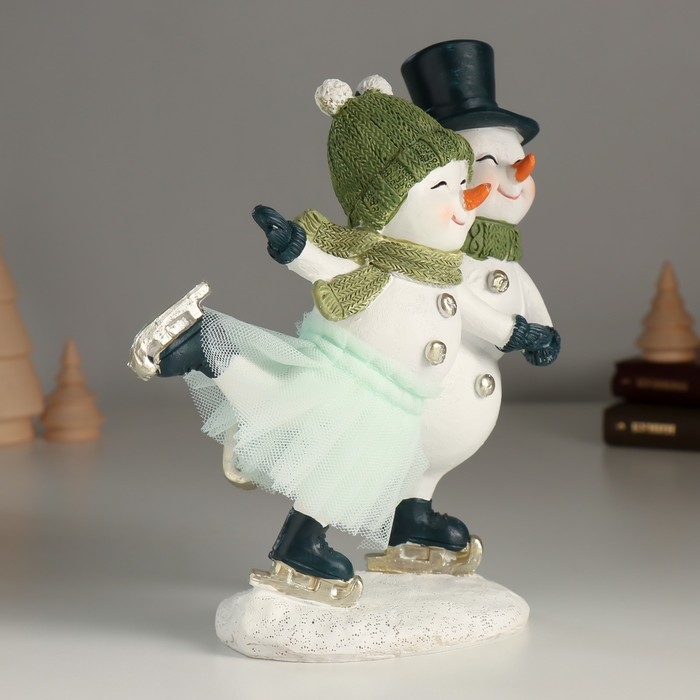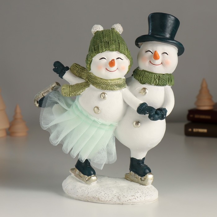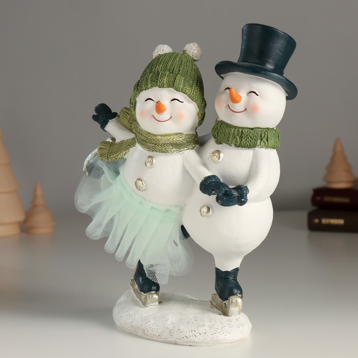 Сувенир полистоун "Милая пара снеговичков" 16х9,5х18,5 см