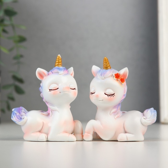 Сувенир полистоун "Милые единороги" набор 2 шт 7х4х8, 7х4х8 см