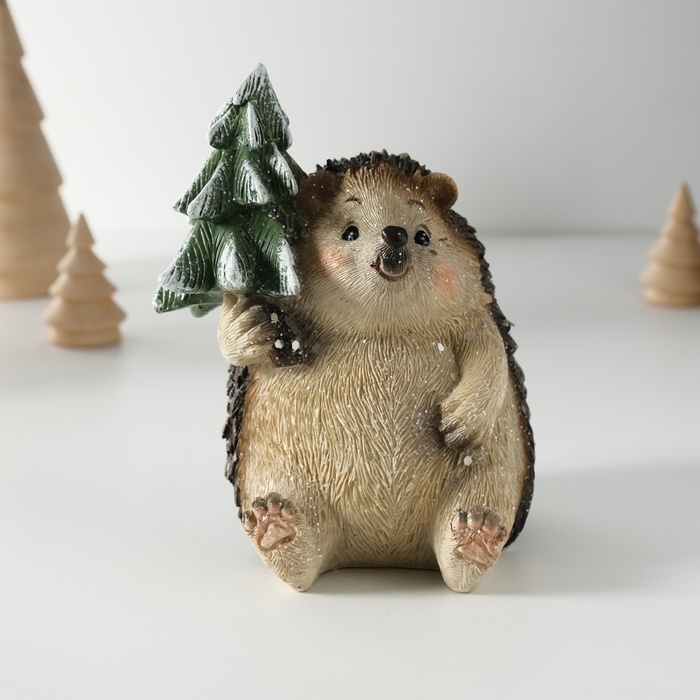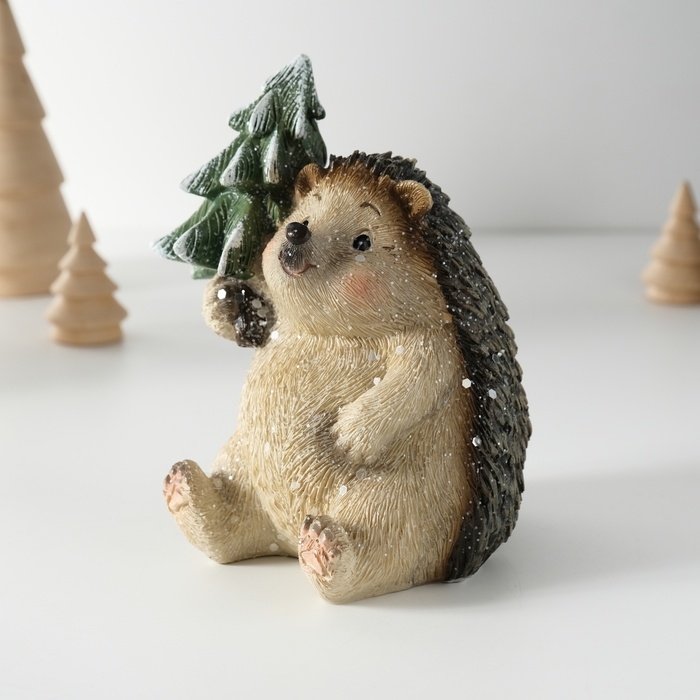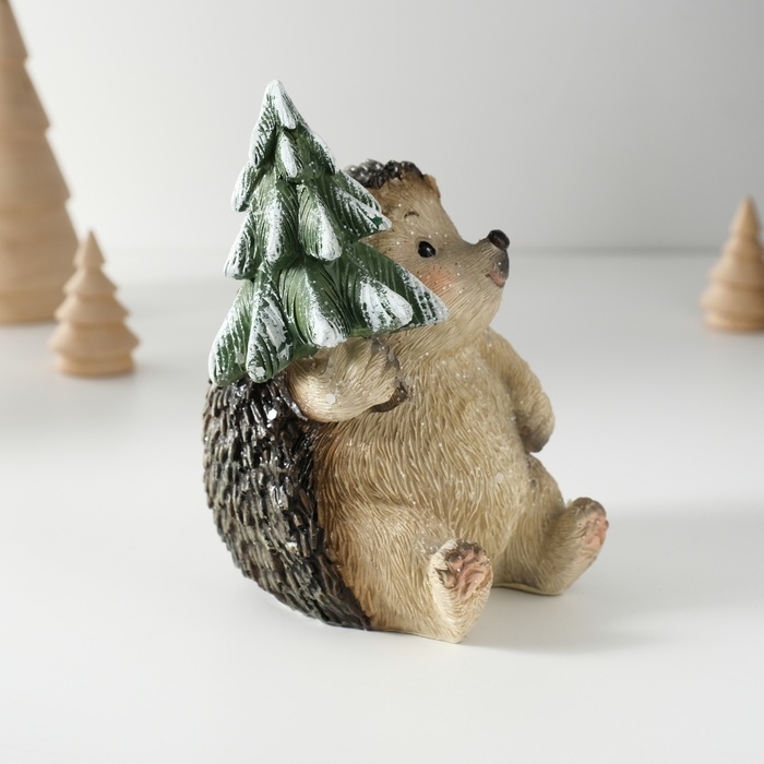 Сувенир полистоун "Милый ёжик с ёлочкой" 10х9,5х12,5 см