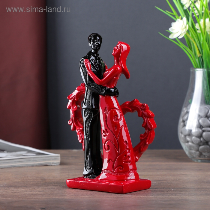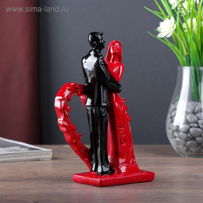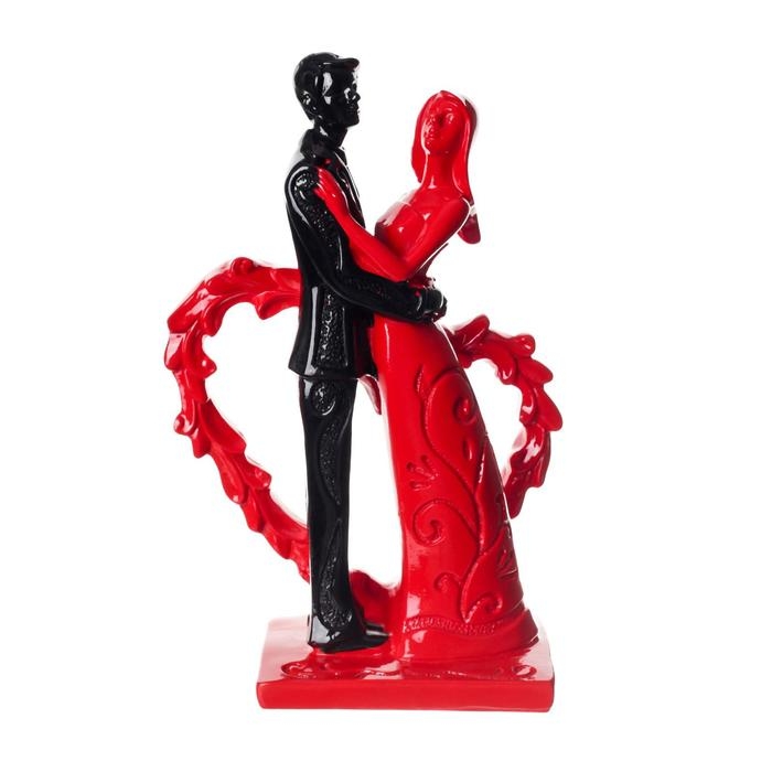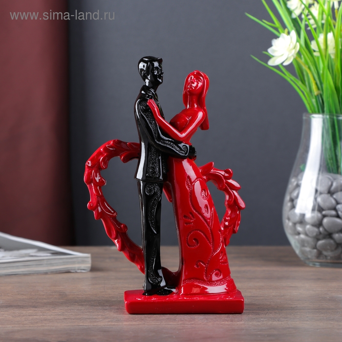 Сувенир полистоун "Молодожёны у сердца" красно-чёрный 18,7х11,8х5,7 см