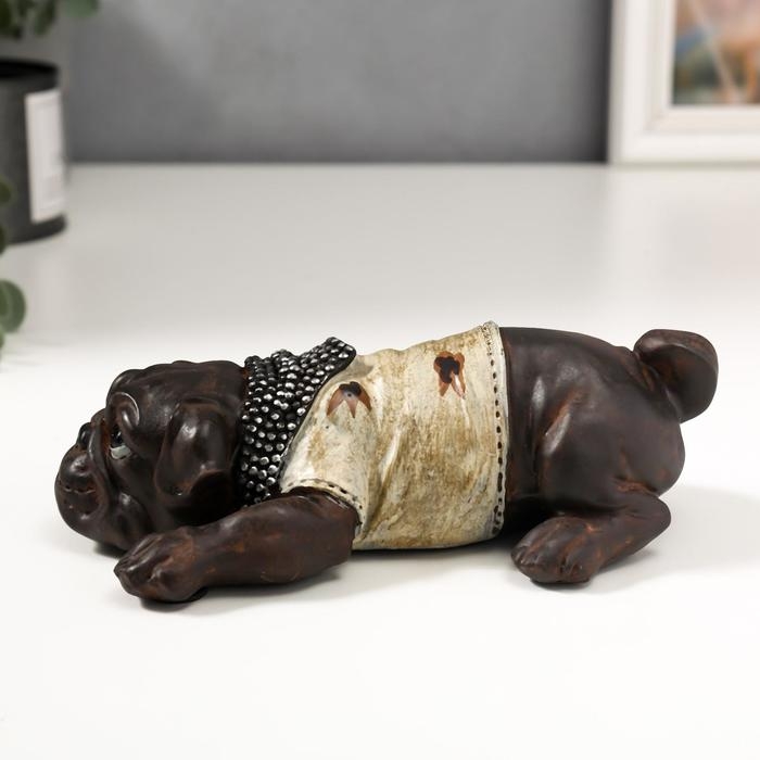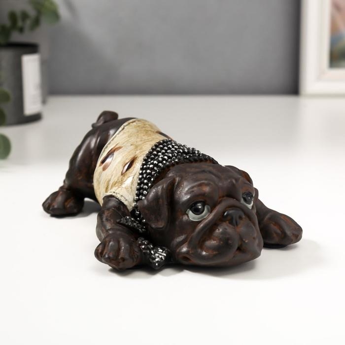 Сувенир полистоун "Мопс в футболке с косынкой" под бронзу 5,5х18х11 см