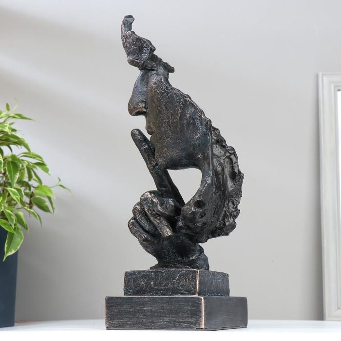 Сувенир полистоун "Мужской лик - тишина" чернённая медь 34х12х11 см