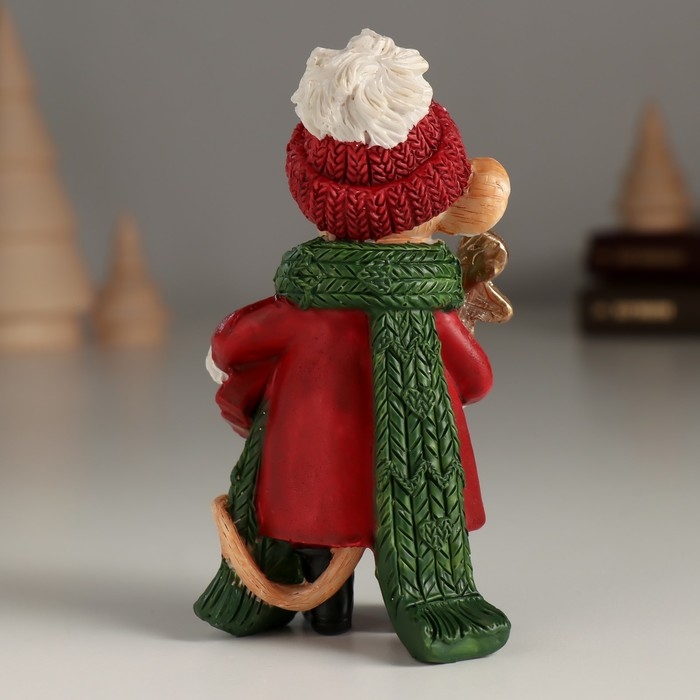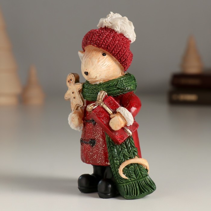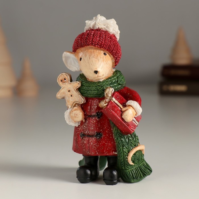 Сувенир полистоун "Мышка в красной шапочке с пряником и подарком" 5,5х4,5х11 см