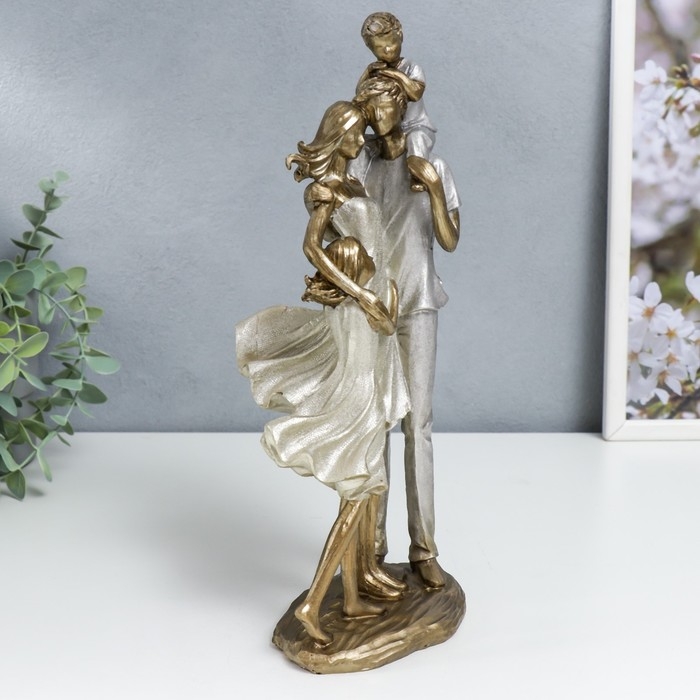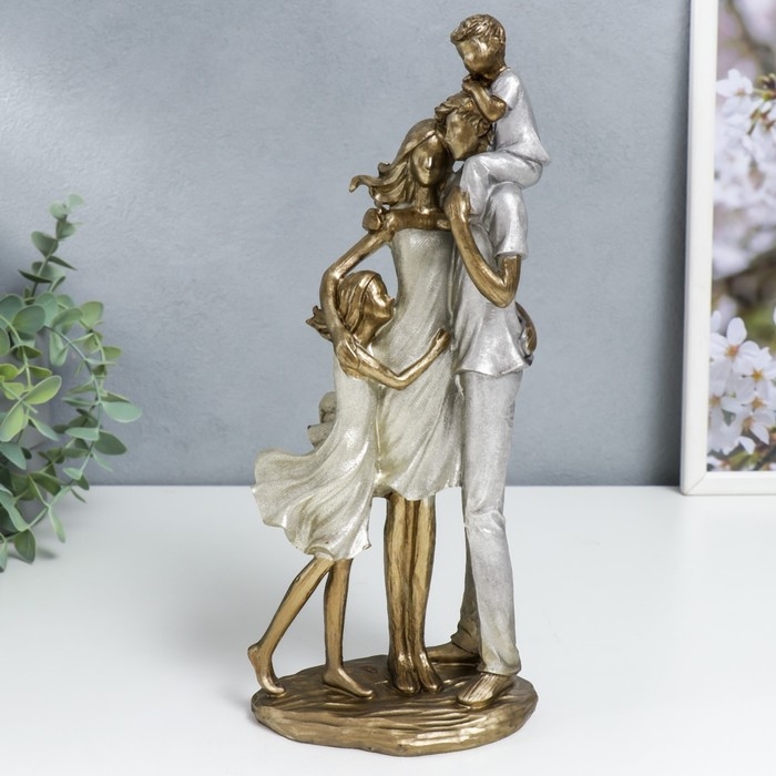 Сувенир полистоун "Наша большая семья" серо-синий и перламутр 28,5х10,5х12,5 см