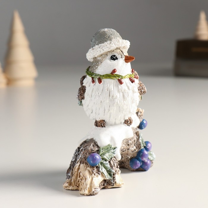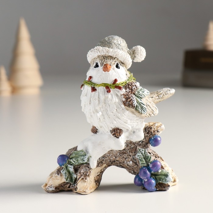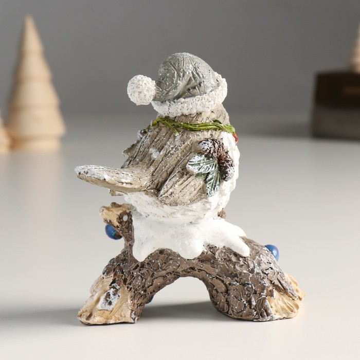 Сувенир полистоун "Новогодний воробышек в колпаке на коряге с ягодками" 5,5х11х11,5 см