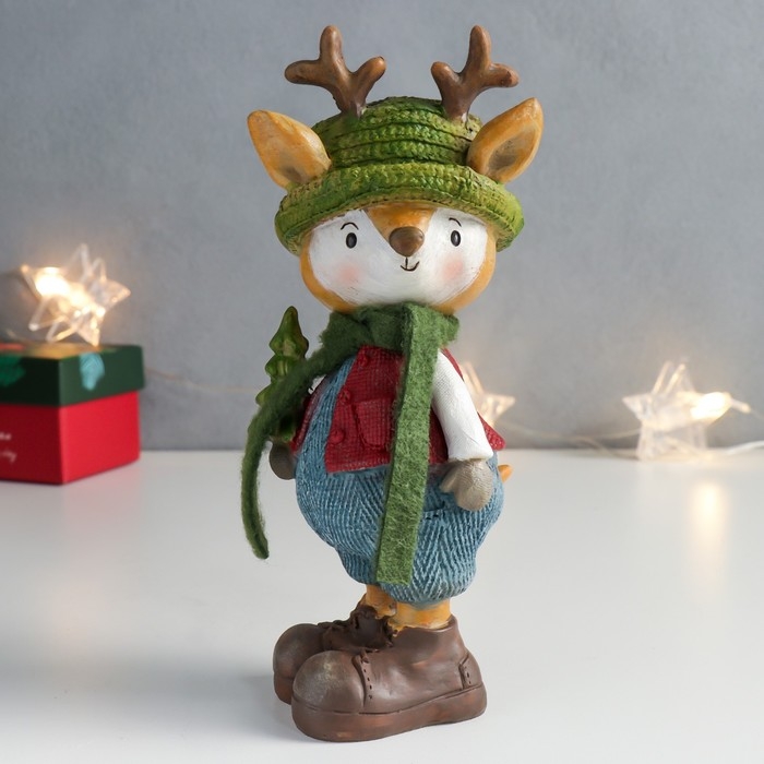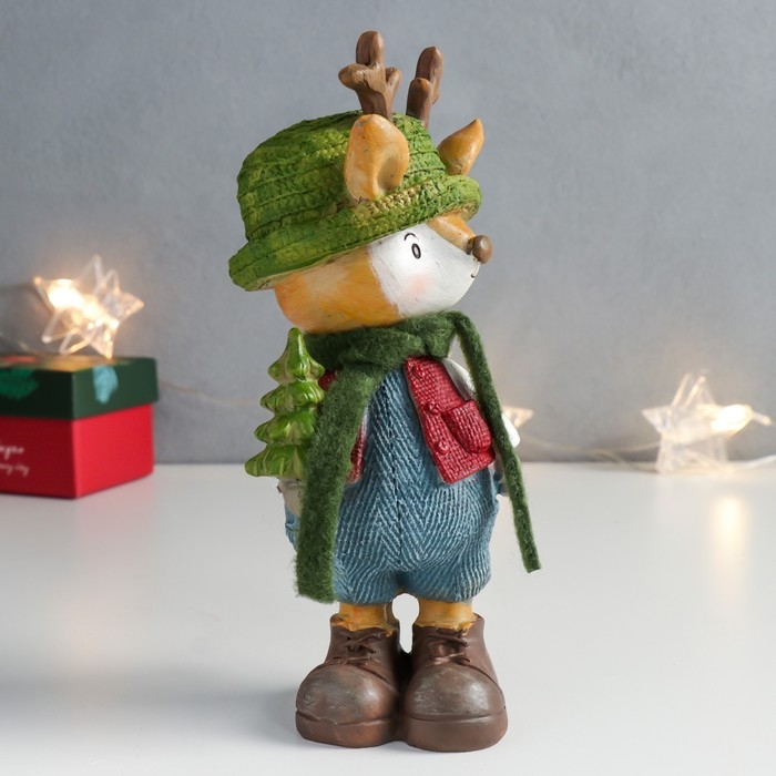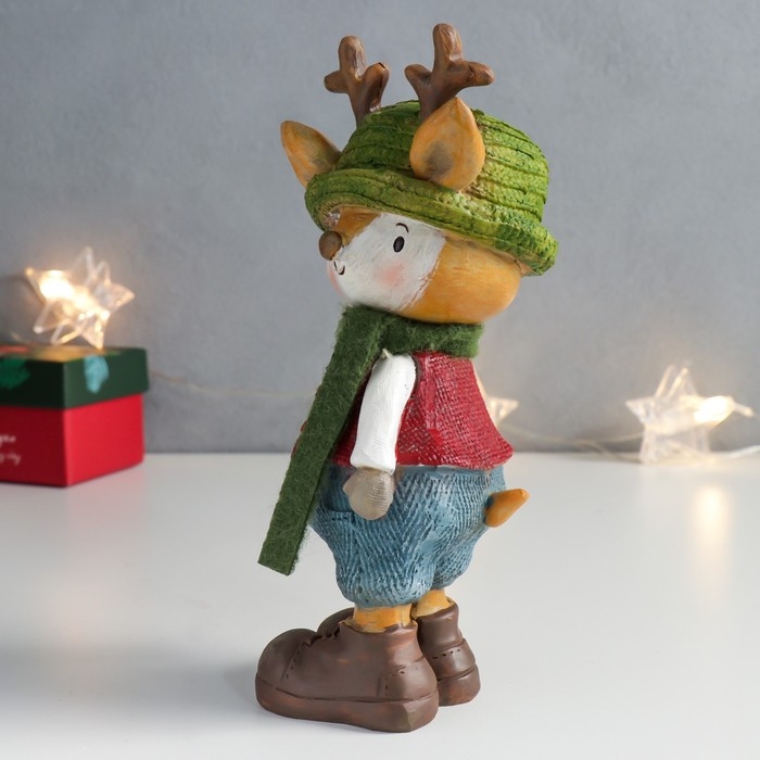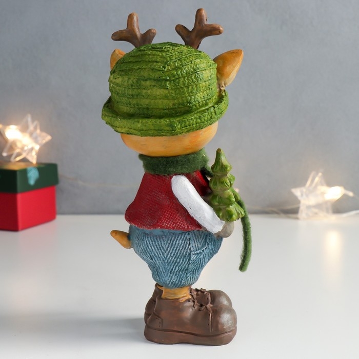 Сувенир полистоун "Оленёнок в зелёной шляпке с ёлочкой" 8,5х8х18,3 см