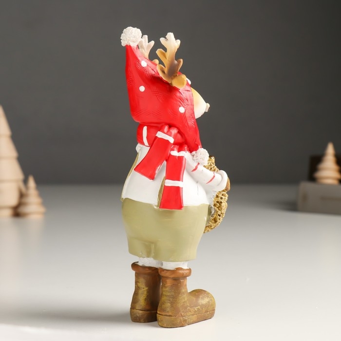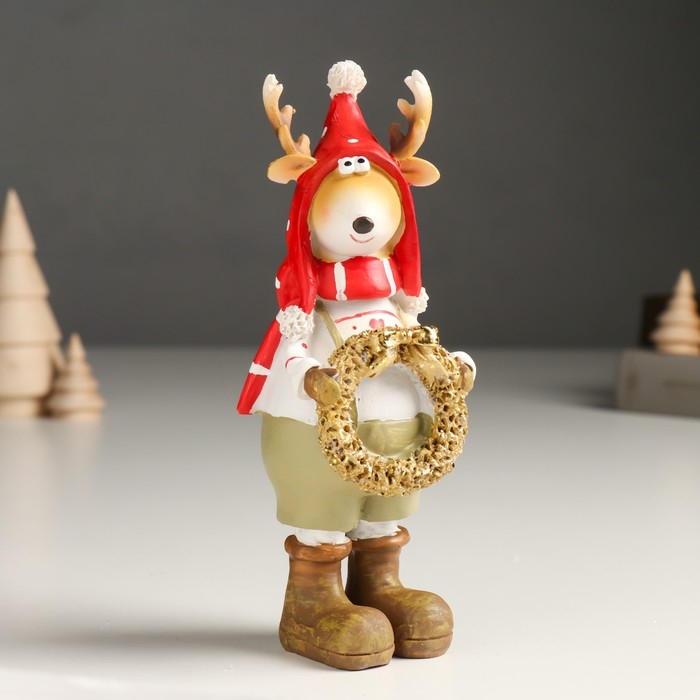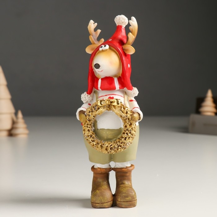 Сувенир полистоун "Олешка в шапке-колпаке с золотым еловым венком" 5х6,5х17 см