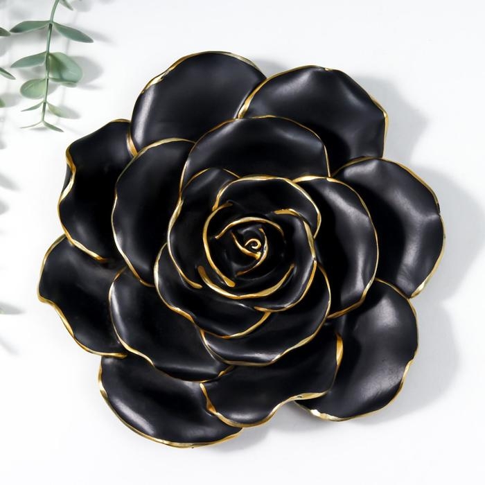 Сувенир полистоун панно "Чёрная королевская роза" с золотом 20х19х6 см