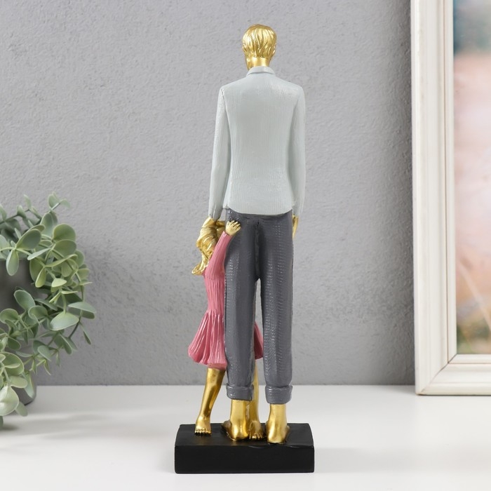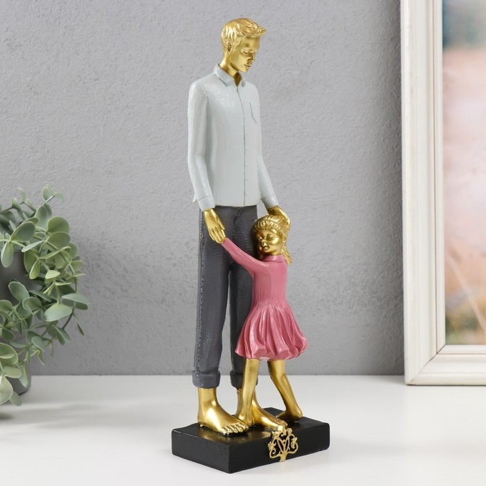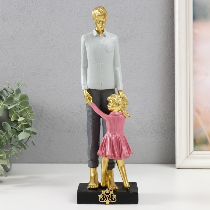 Сувенир полистоун "Папа с дочкой" золото 9,6х7х29,5 см