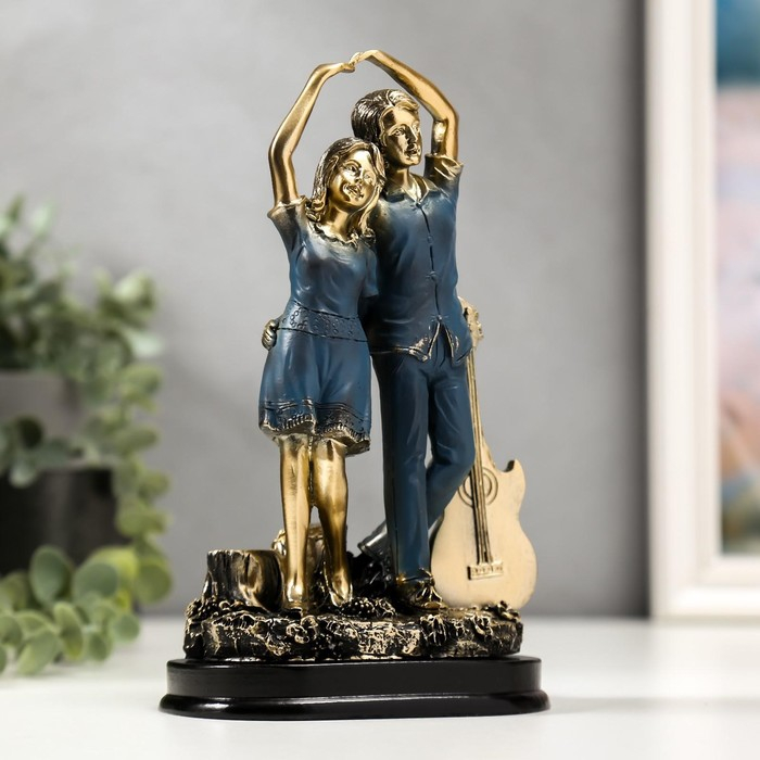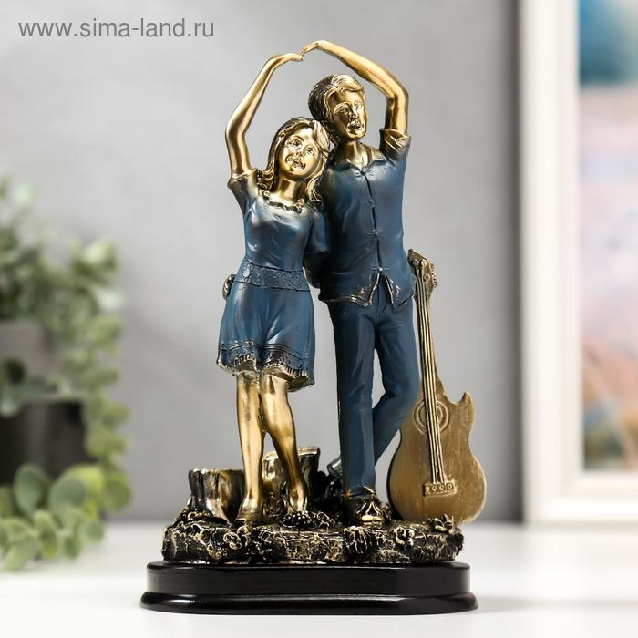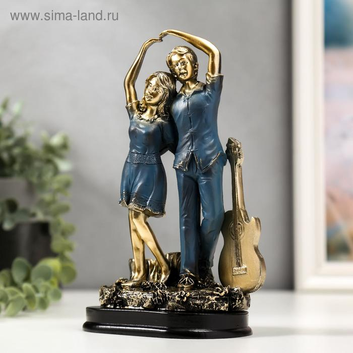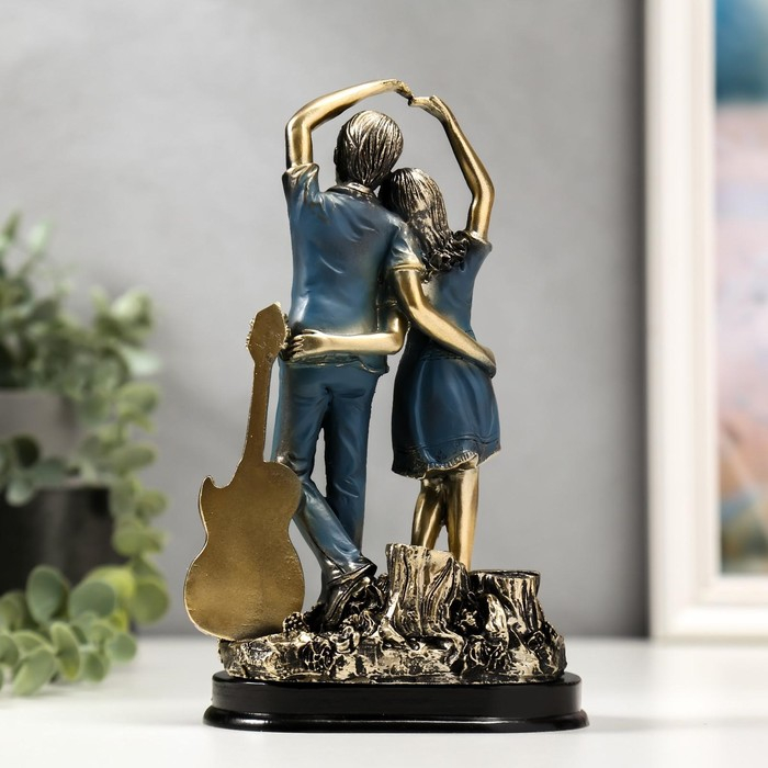 Сувенир полистоун "Парочка - свидание под гитару" серебро с синим 19х8х12 см МИКС
