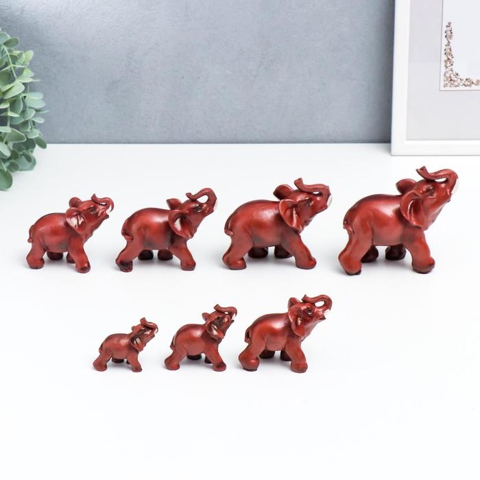 Сувенир полистоун под красное дерево набор 7 шт "Стадо слонов" 9;7,5;7;6,5;5,3, 4,8,4 см