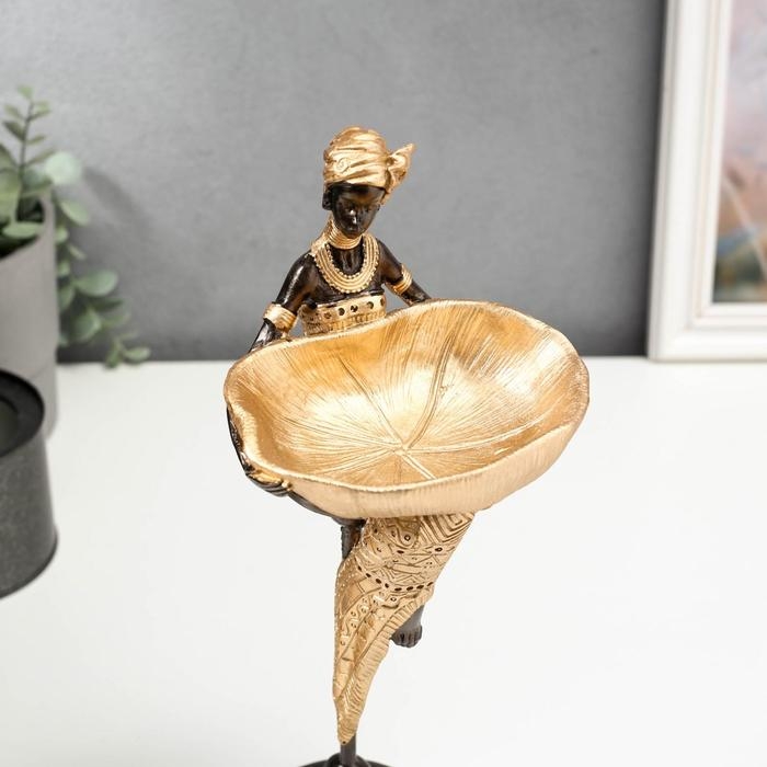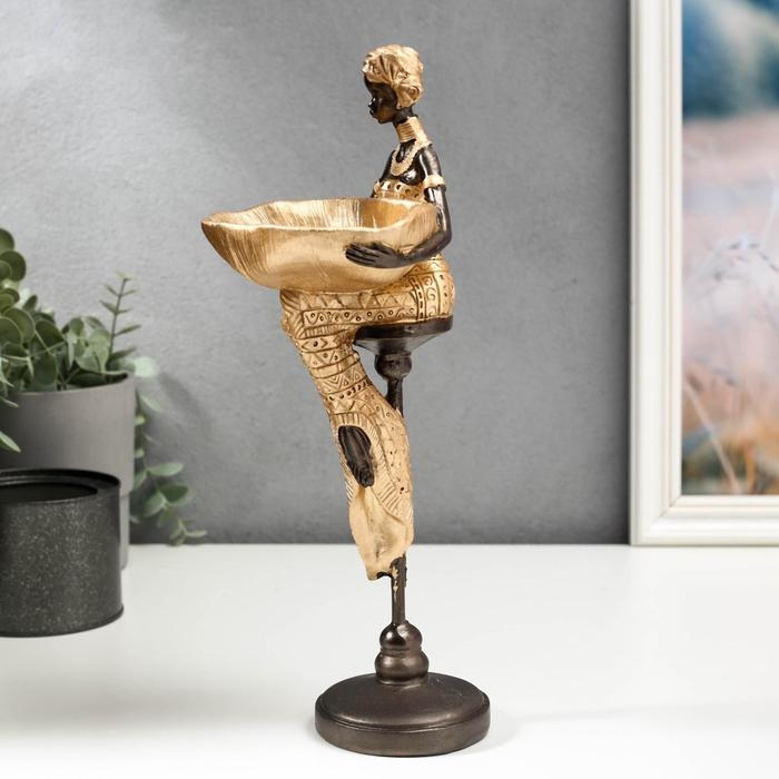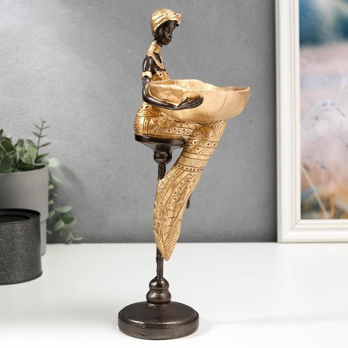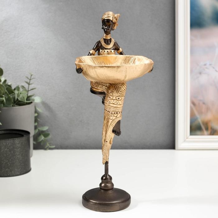 Сувенир полистоун подставка "Африканка с блюдом, в золотом наряде" 31,5х10,5х12,5 см