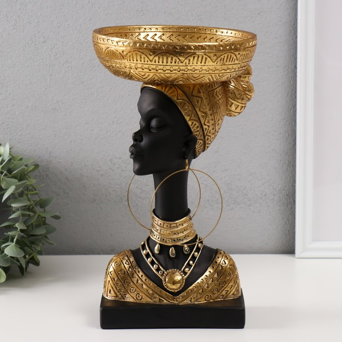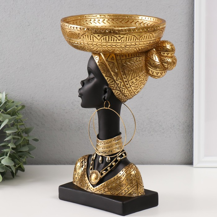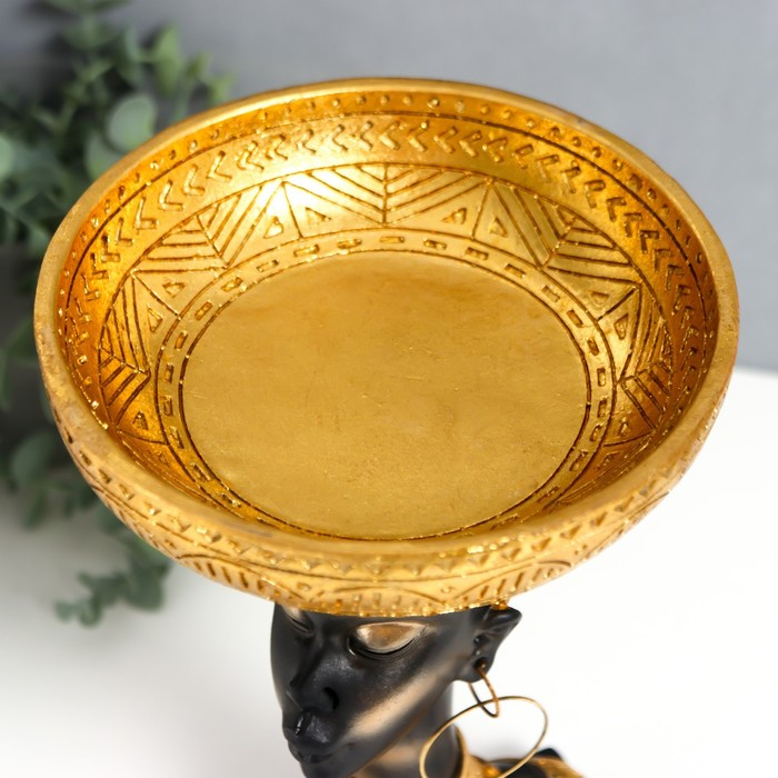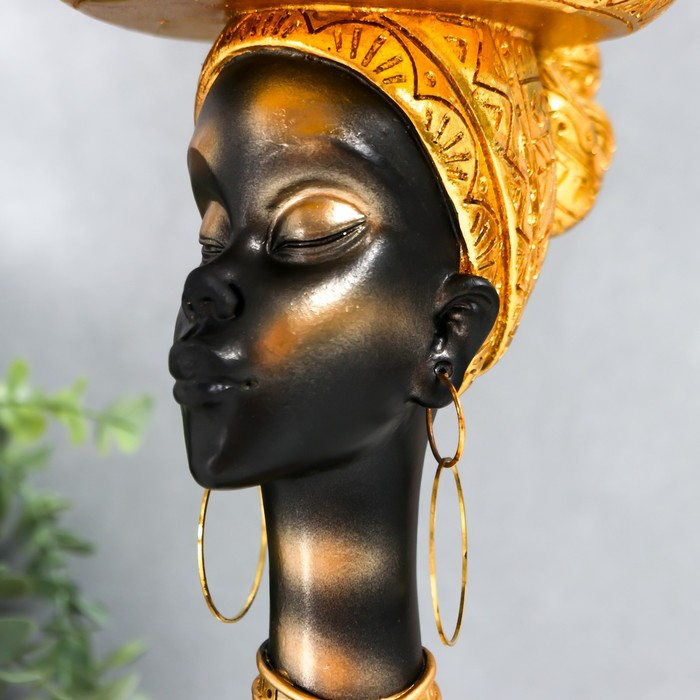 Сувенир полистоун подставка "Африканка с золотой тарелкой на голове" 30х17х17 см