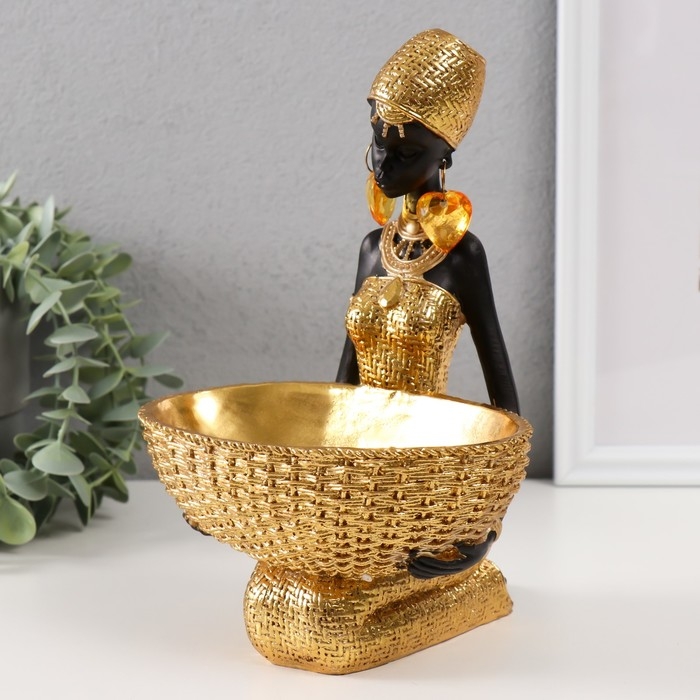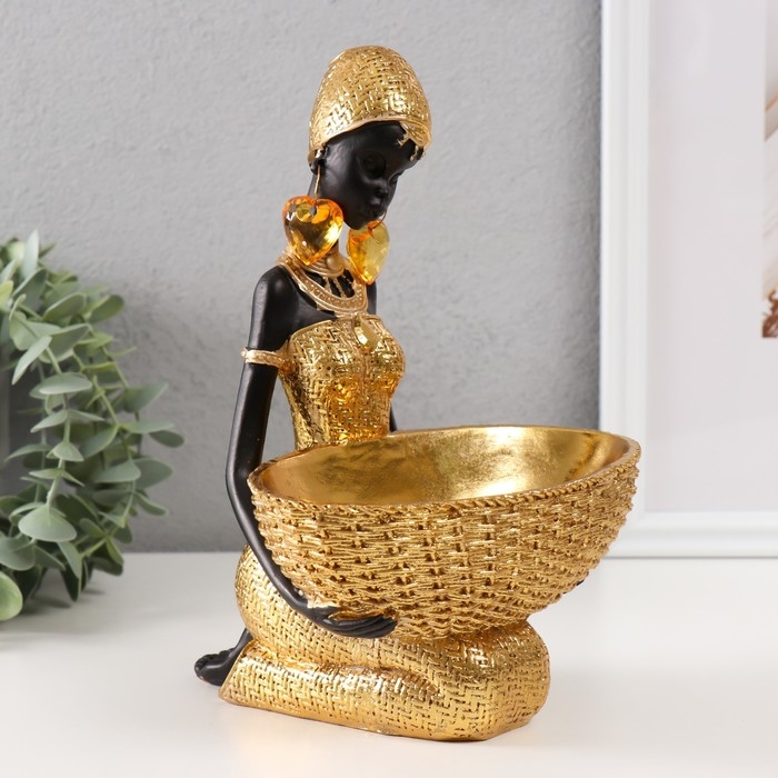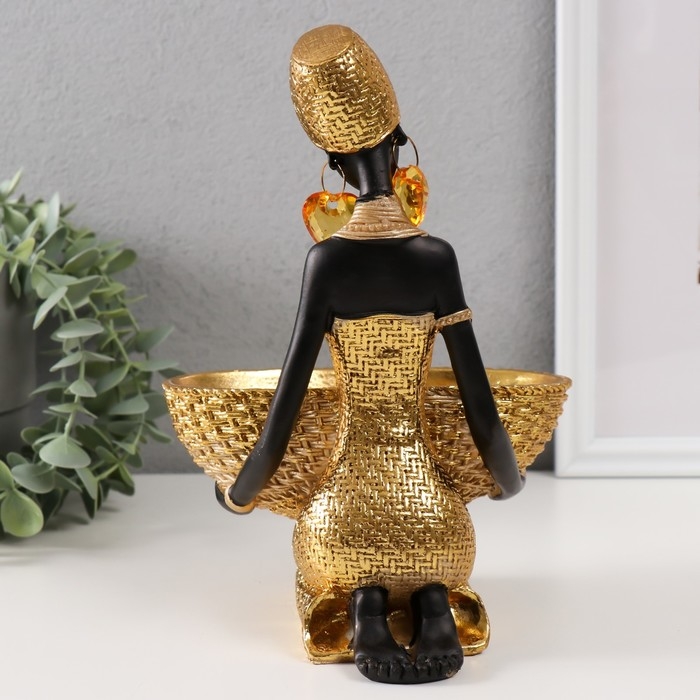 Сувенир полистоун подставка "Африканка сидит, с плетёной корзиной" золото 16х16х23 см