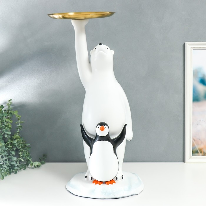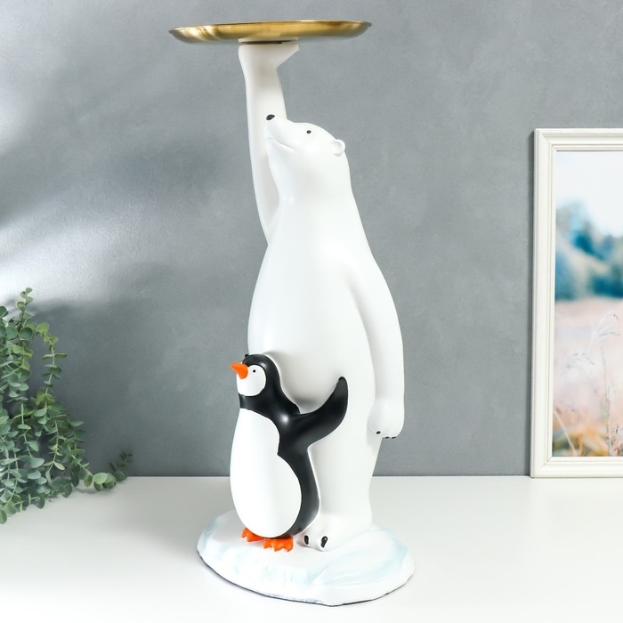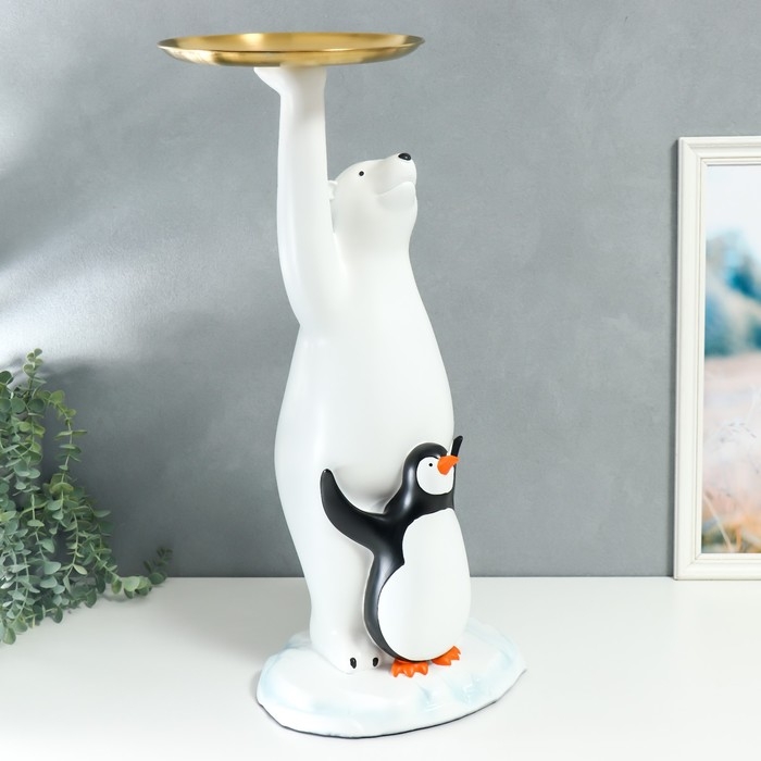 Сувенир полистоун подставка "Белый медведь и пингвин" 69х26х32 см
