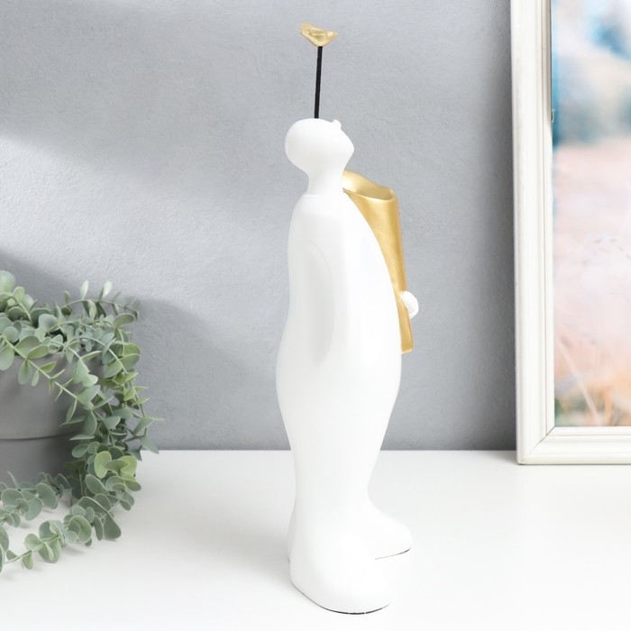 Сувенир полистоун подставка "Человек с птицей на голове" белый 16х38 см