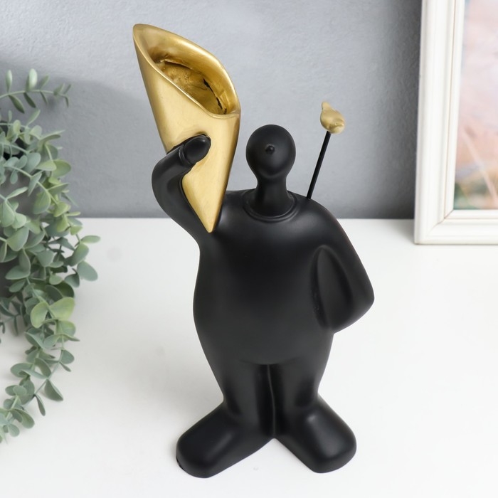 Сувенир полистоун подставка "Человек с птицей на плече" чёрный 14х33 см