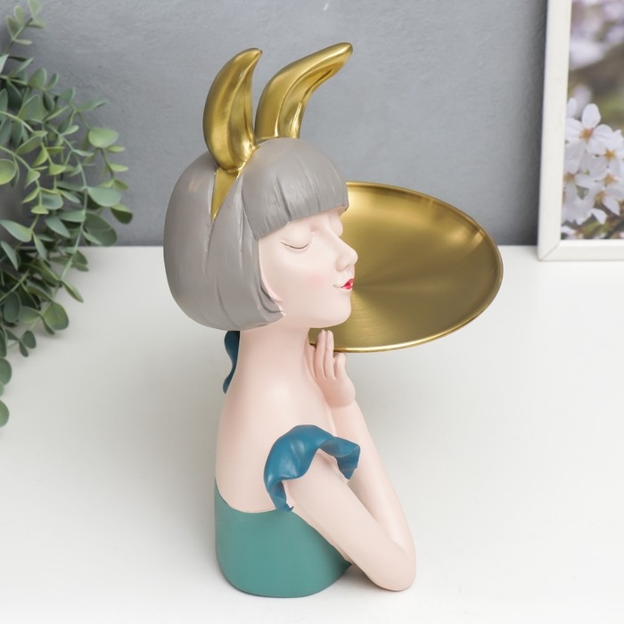 Сувенир полистоун подставка "Девушка с зачьими ушками" 32х17х24 см