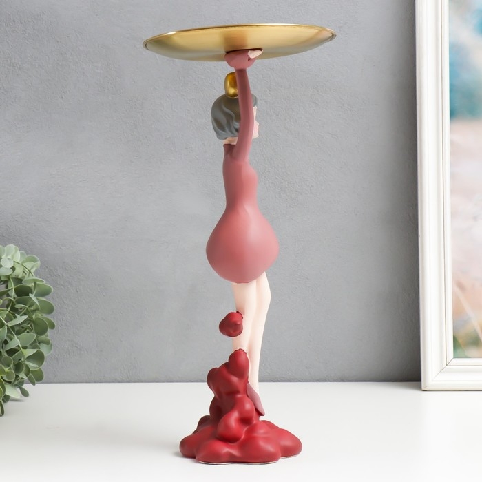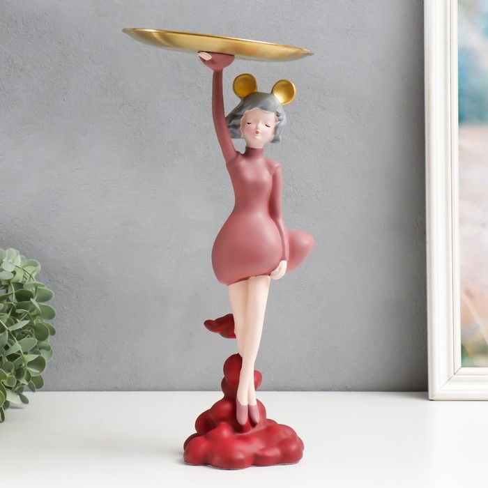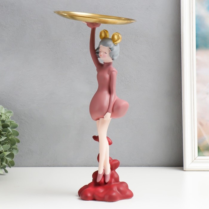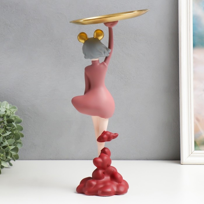 Сувенир полистоун подставка "Девушка ушки мишки, сердца" розовый 36х17х17 см