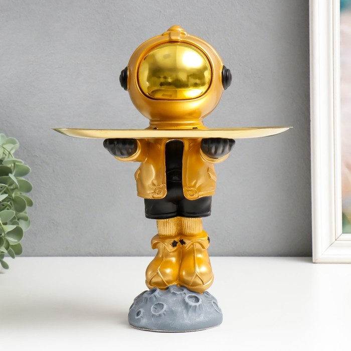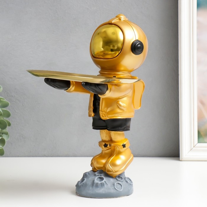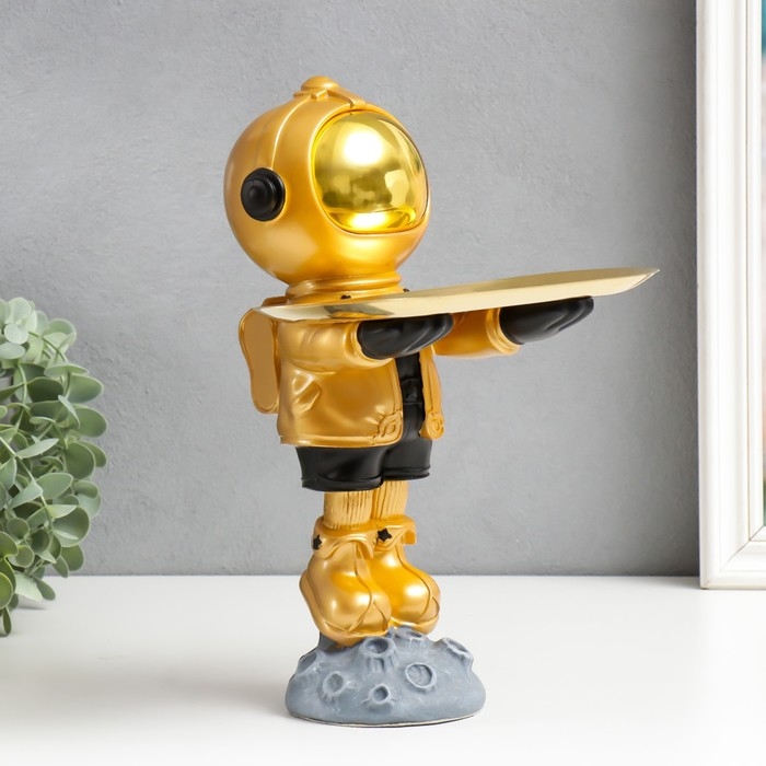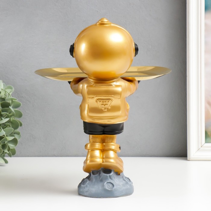 Сувенир полистоун подставка "Космонавт на астероиде" золотой 29х17х22,5 см