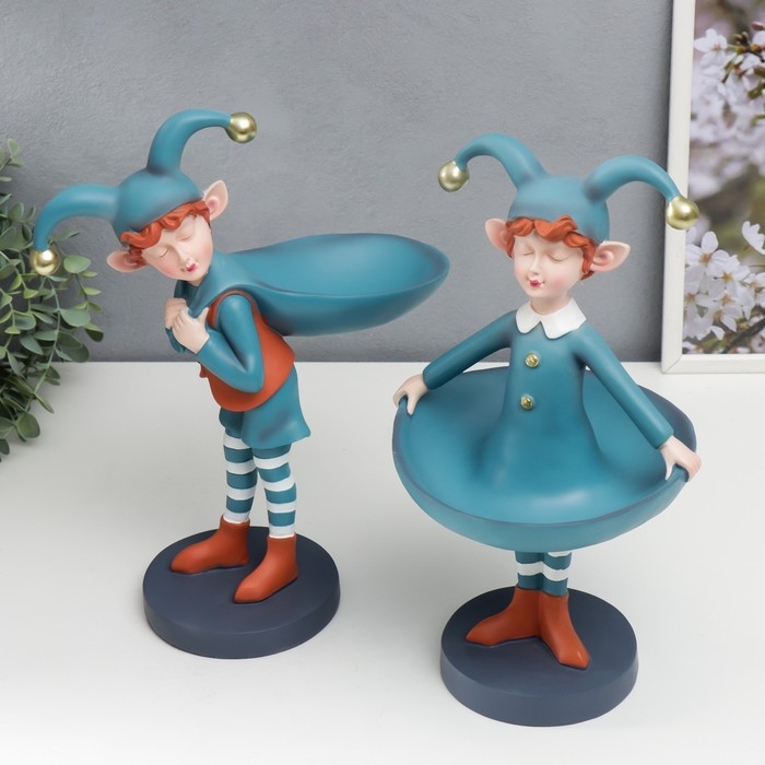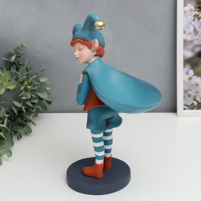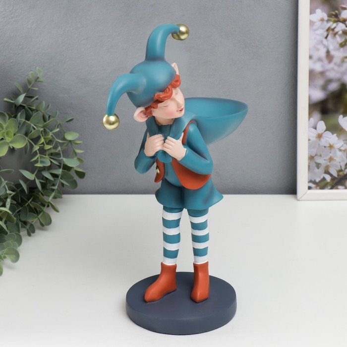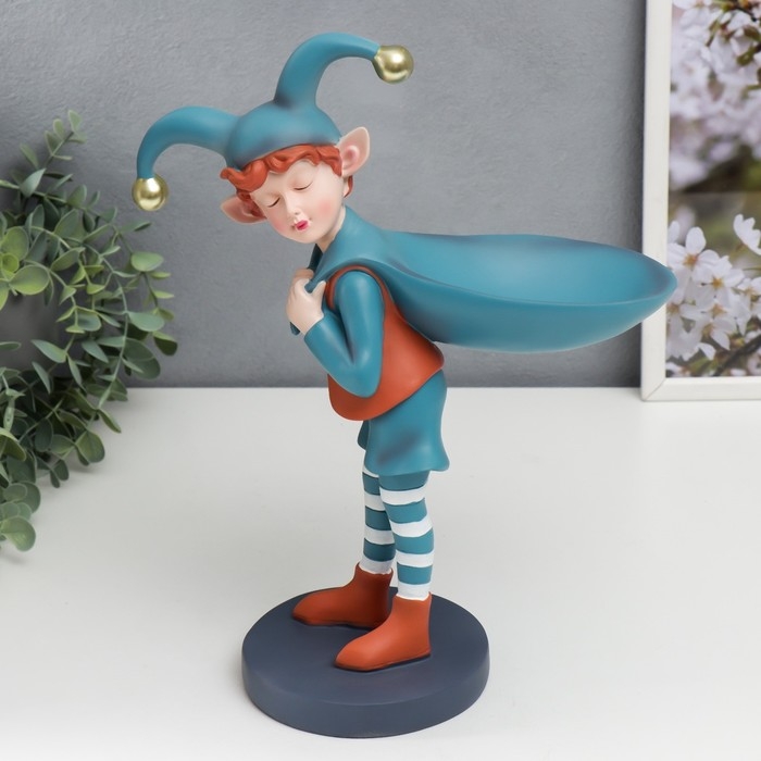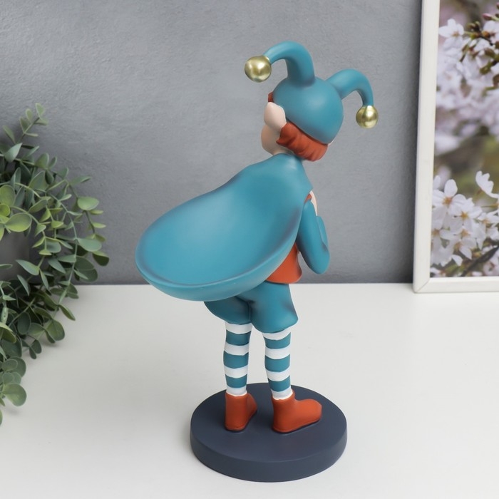 Сувенир полистоун подставка "Малыш-скоморох с мешком" оранжево-голубой 33х12,5х25,5 см