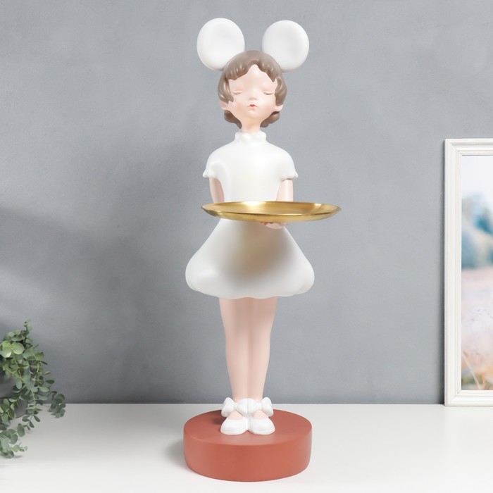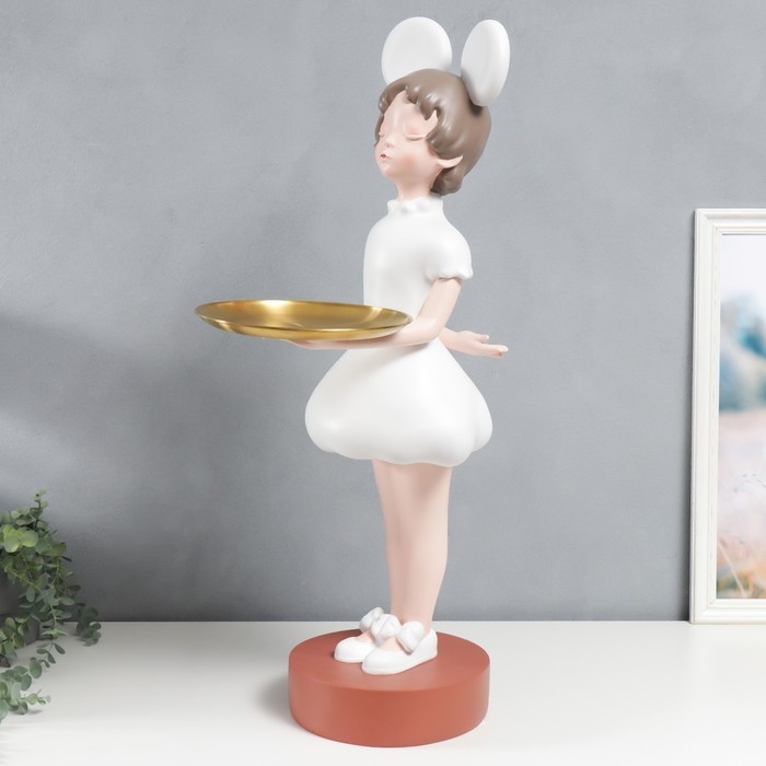 Сувенир полистоун подставка "Малышка с ушками, в белом платьице" d=26 см 81х40х40 см
