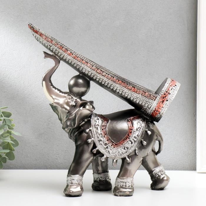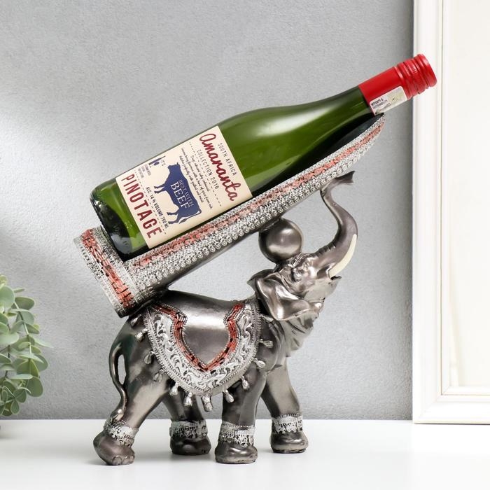 Сувенир полистоун подставка под бутылку "Грифельный слон" 29,5х29х10 см