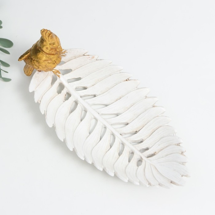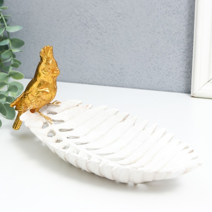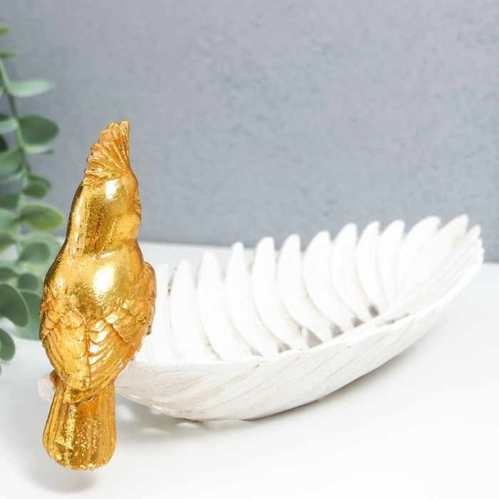 Сувенир полистоун подставка "Золотой попугайчик с хохолком на белом листе" 11х24,5х11 см