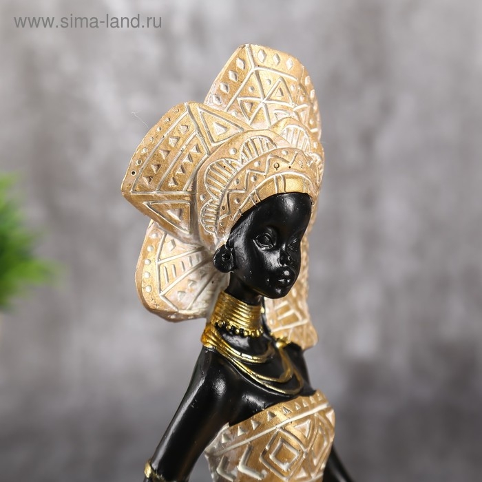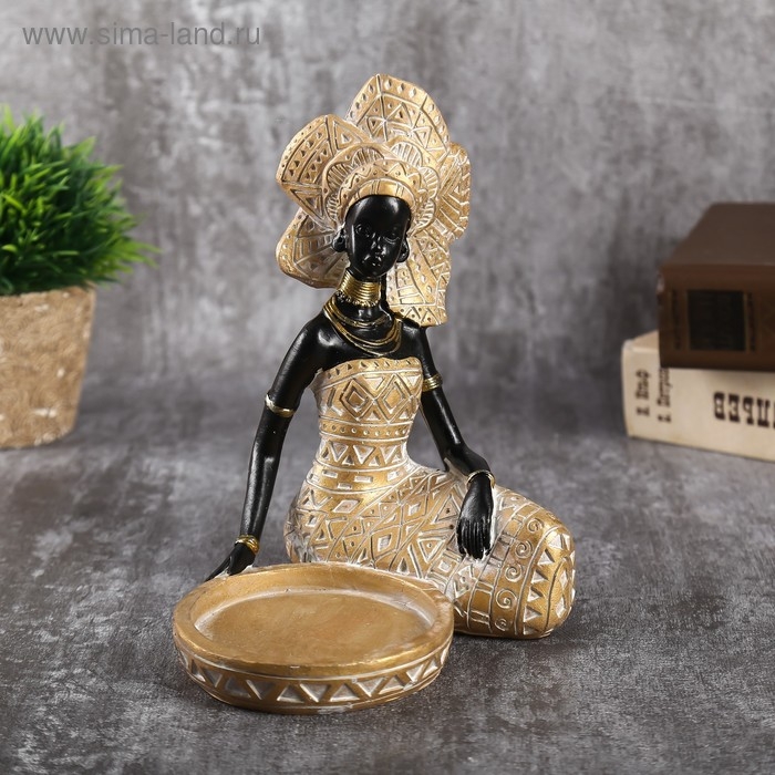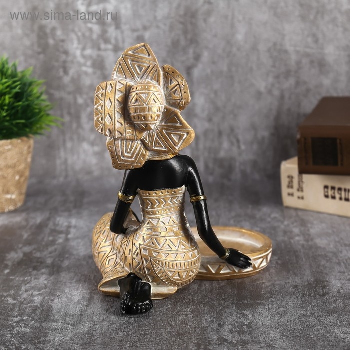 Сувенир полистоун подсвечник "Африканка в золотом платье с орнаментом" 18,5х12х15,7 см