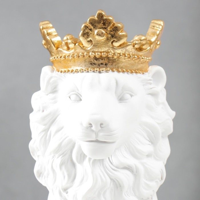 Сувенир полистоун подсвечник "Белый лев в золотой короне" 24,5х14х11,5 см