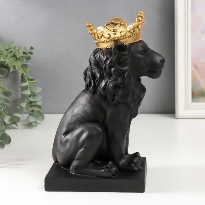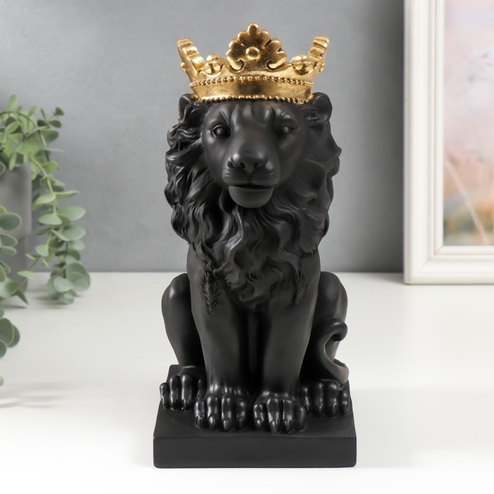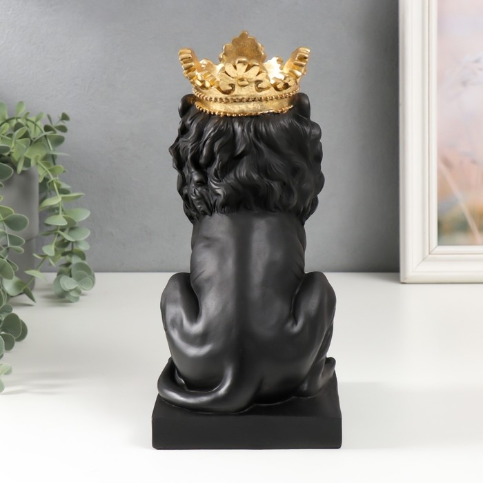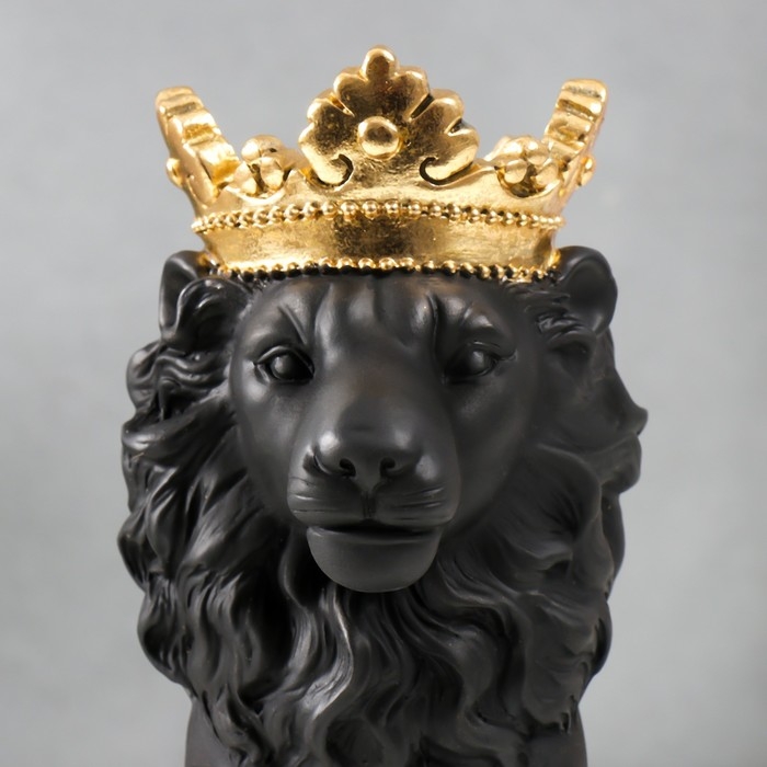 Сувенир полистоун подсвечник "Чёрный лев в золотой короне" 24,5х14х11,5 см