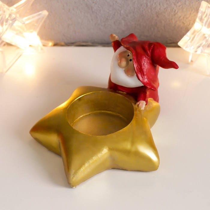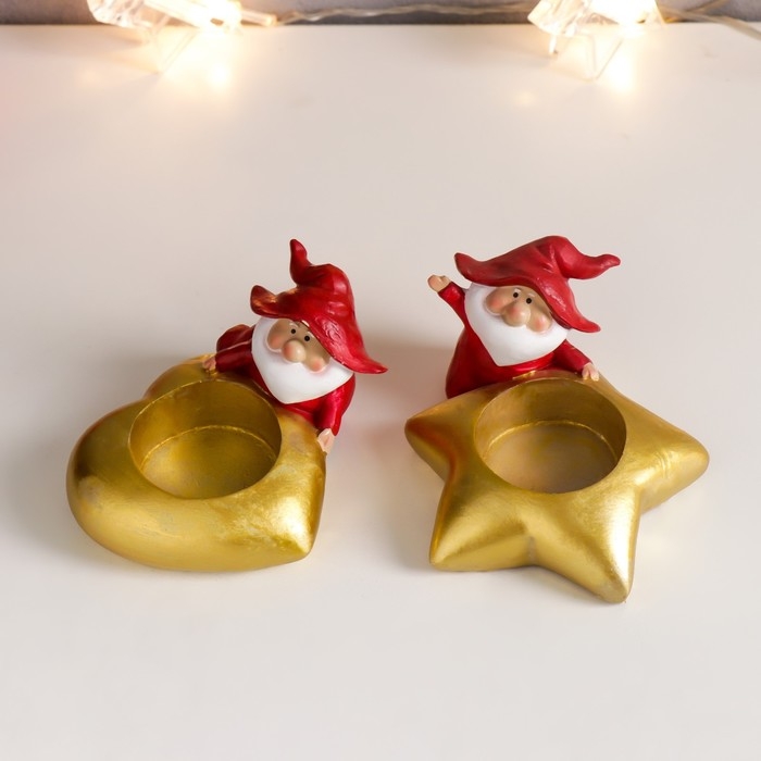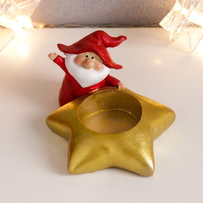 Сувенир полистоун подсвечник "Дедушка Мороз в колпаке гнома"МИКС 5,5х10х8,5 см