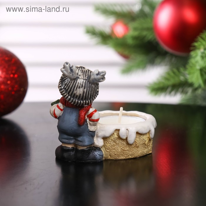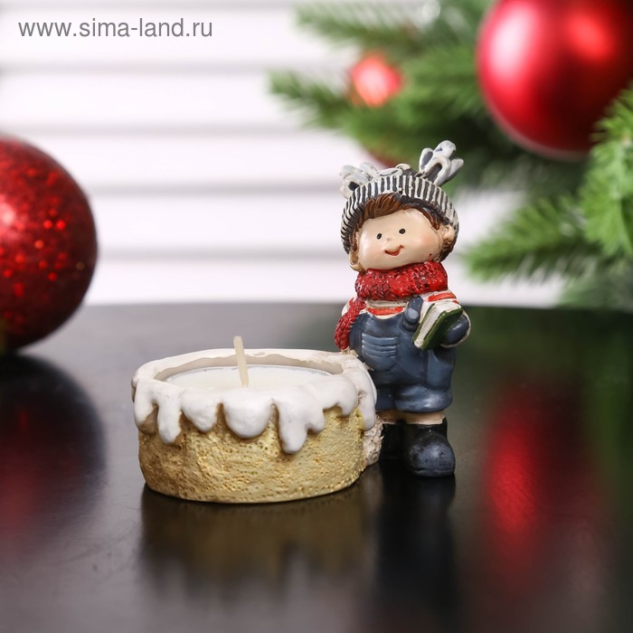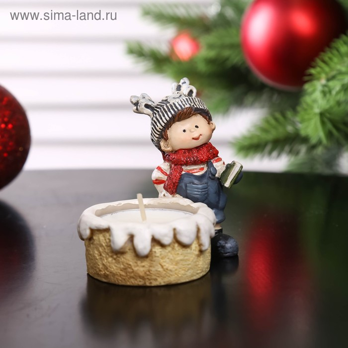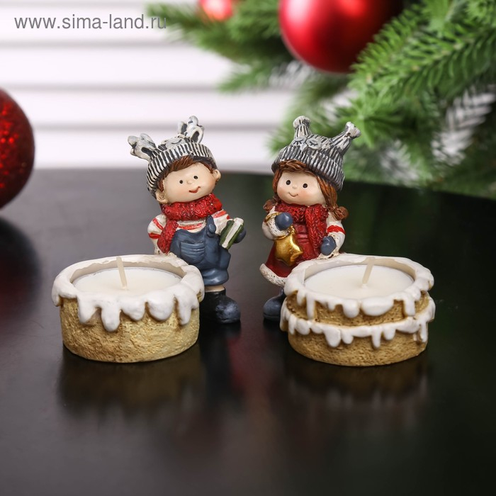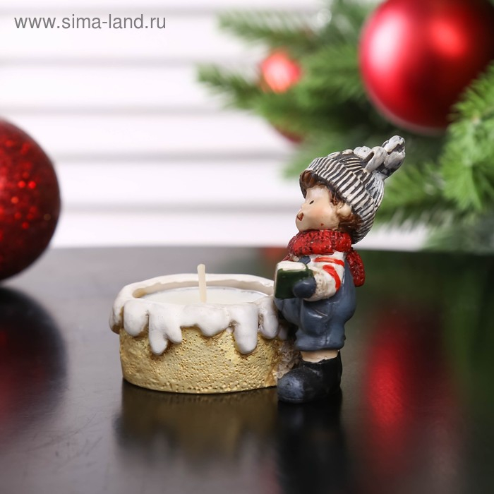 Сувенир полистоун подсвечник со свечой "Мальчик/Девочка в шапочке-зверька" МИКС 7,2х8х5,2 см