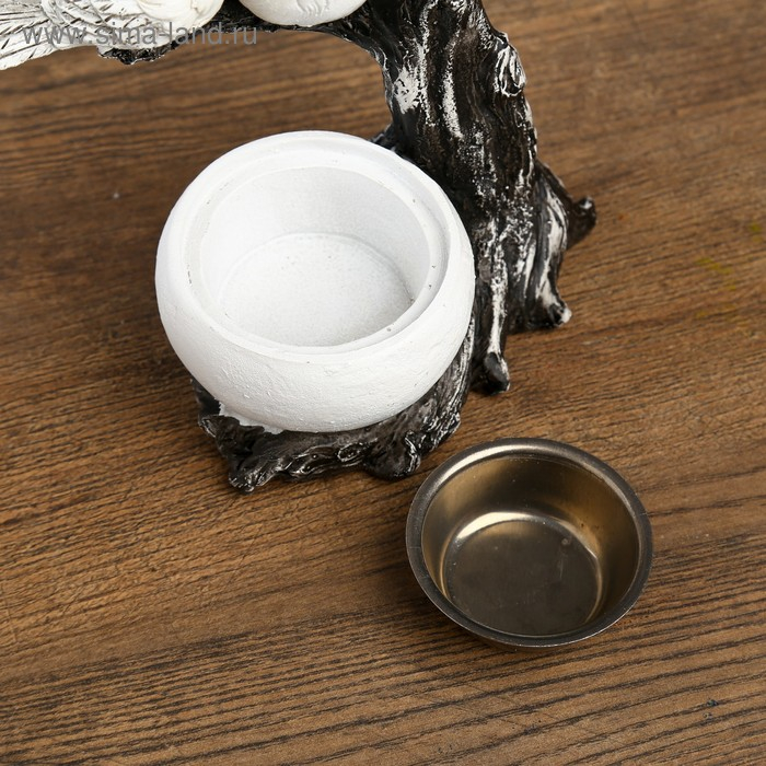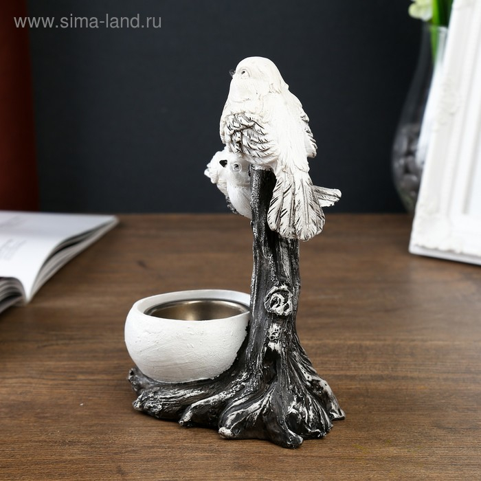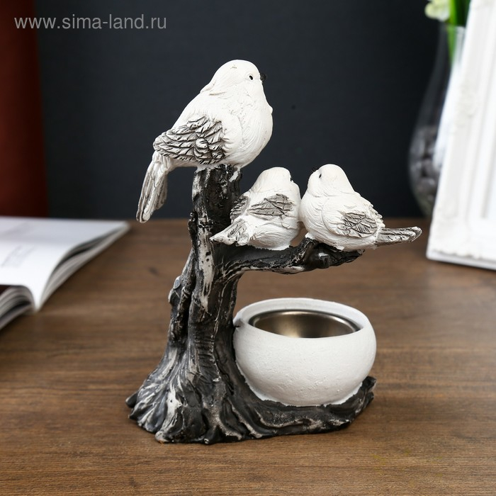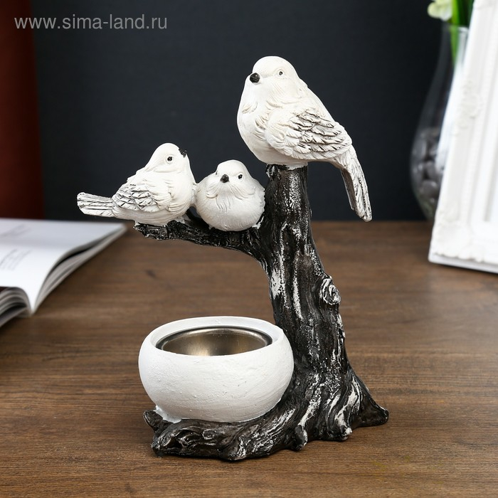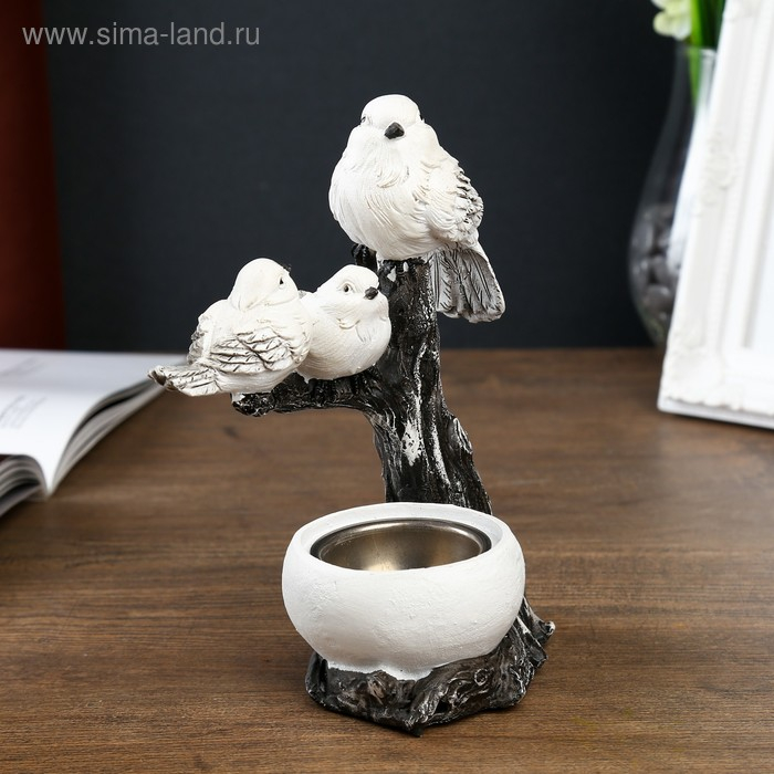 Сувенир полистоун подсвечник "Три белых воробушка на коряге" 17,5х12х7 см
