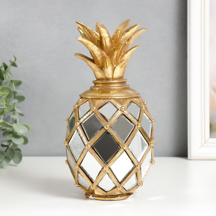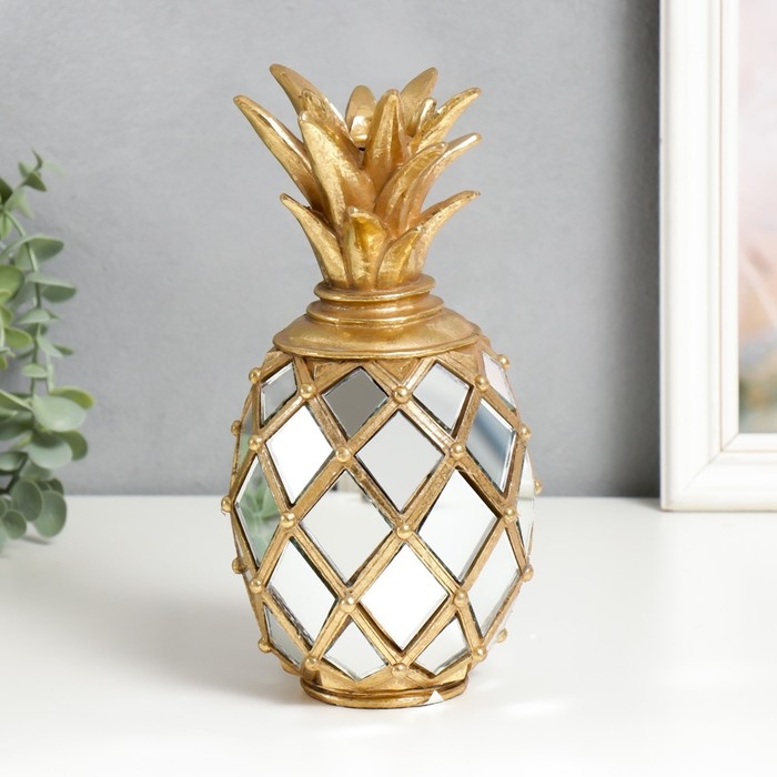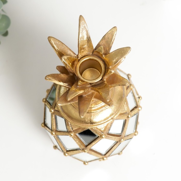 Сувенир полистоун подсвечник "Зеркальный ананас" золото 23,5х11х11 см