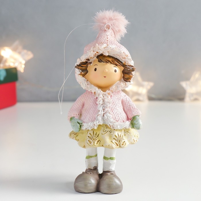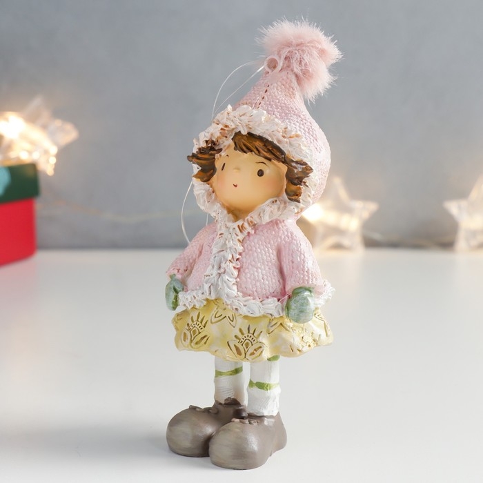 Сувенир полистоун подвеска "Девочка в розовой курточке с капюшоном" 6х5х13 см