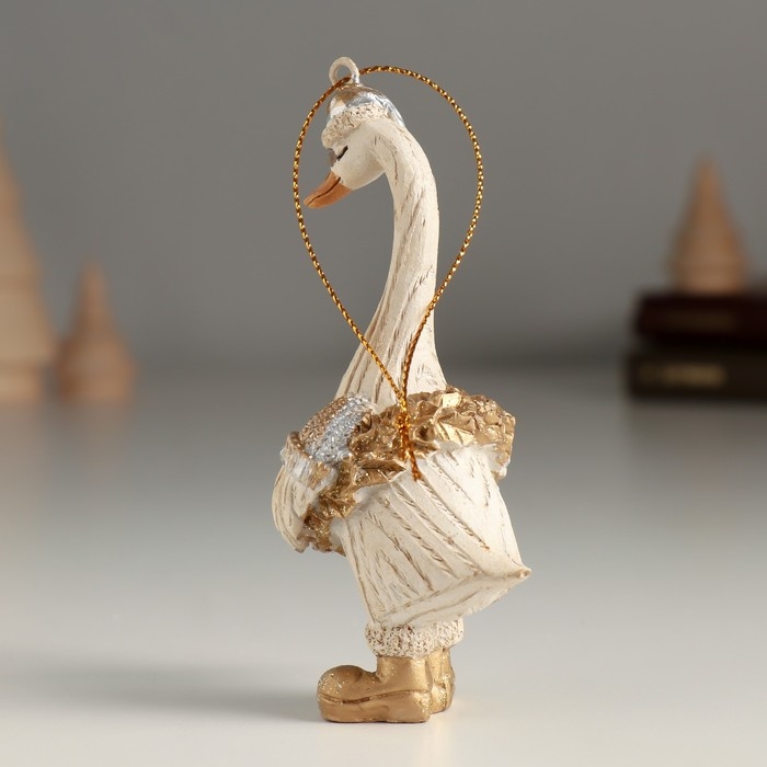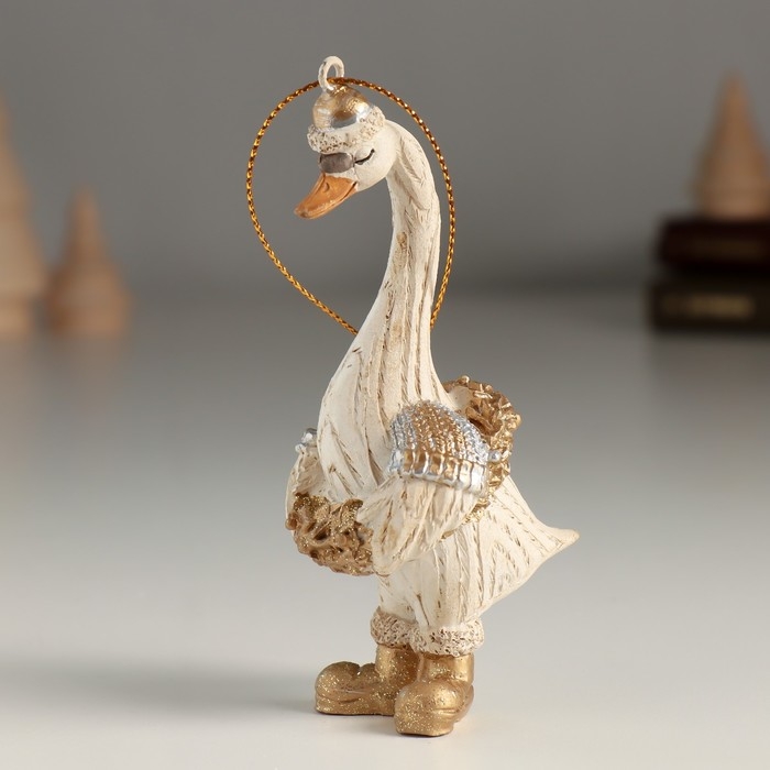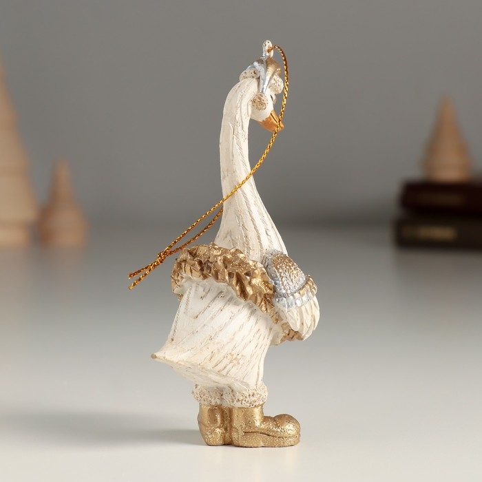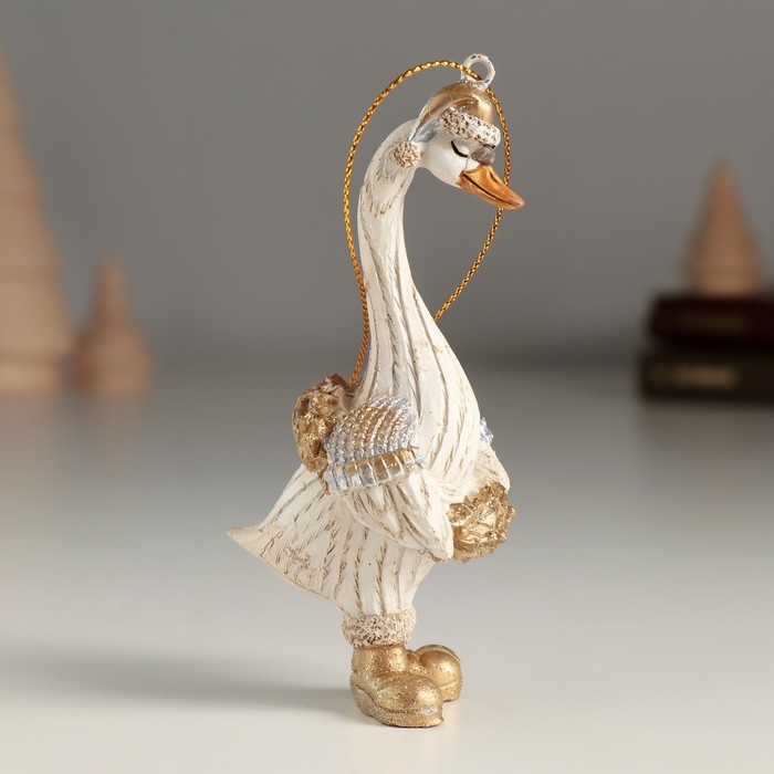 Сувенир полистоун подвеска "Гусь в шапочке и ботинках" 5х4,5х11 см