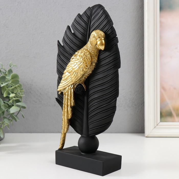 Сувенир полистоун "Попугай Ара на листе" чёрный с золотом 13,3х5,8х28,2 см