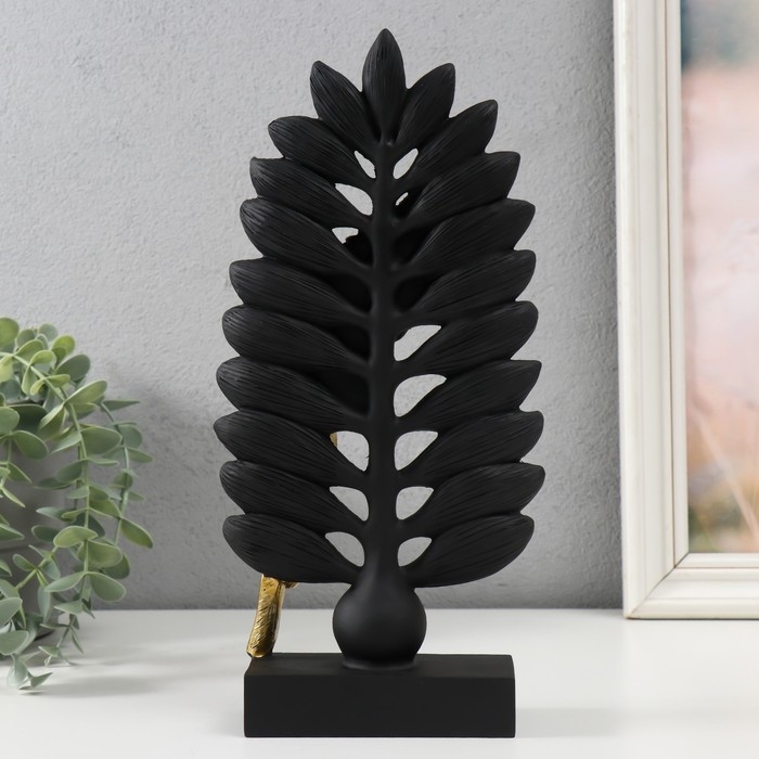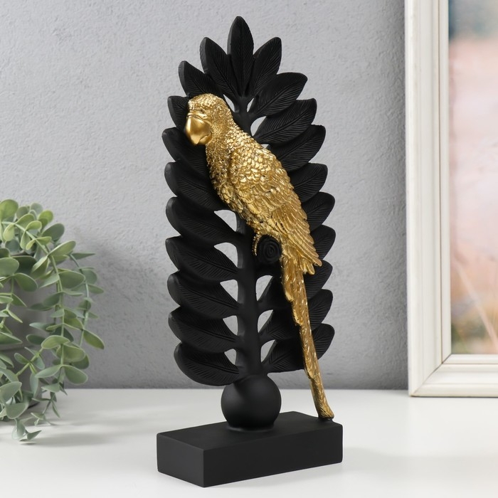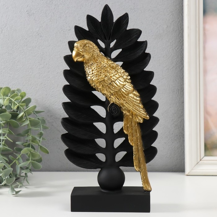 Сувенир полистоун "Попугай Ара на листе папоротника" чёрный с золотом 13,3х5,3х28,2 см