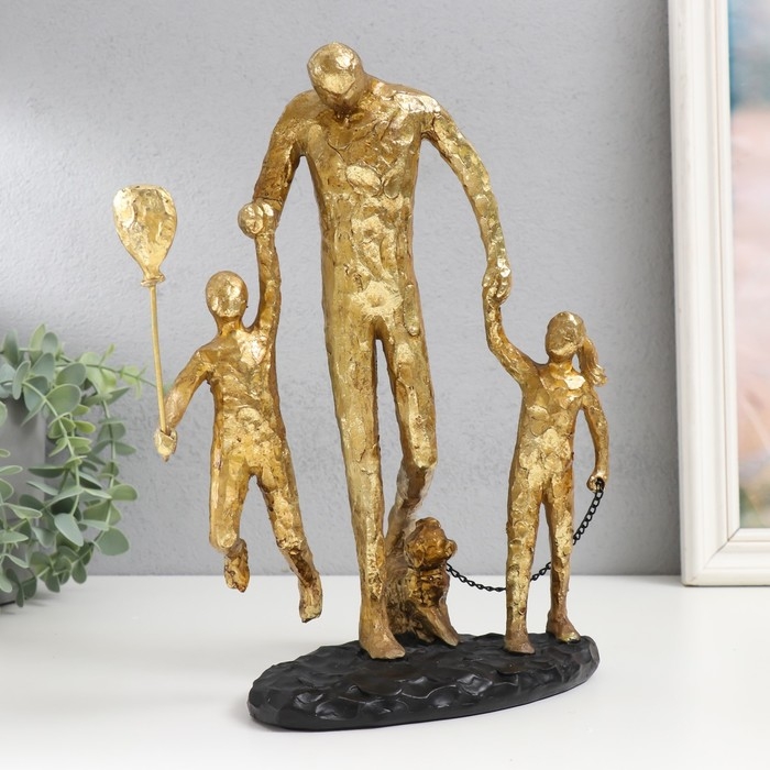 Сувенир полистоун "Прогулка с папой" золото 28х19х12 см