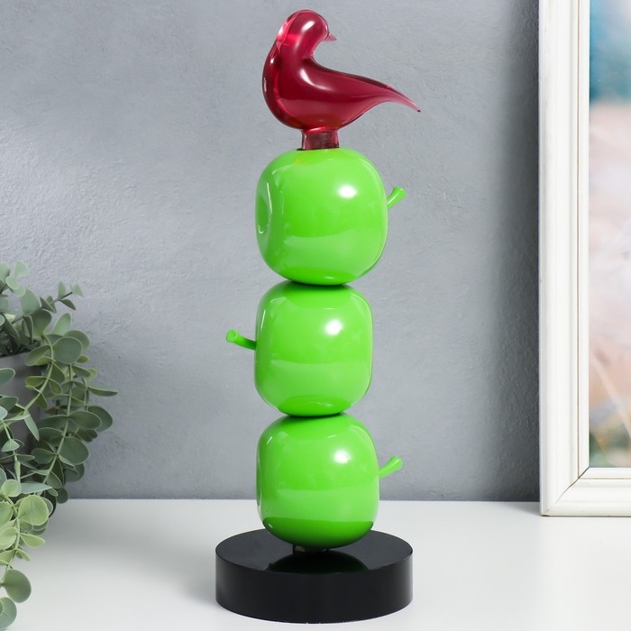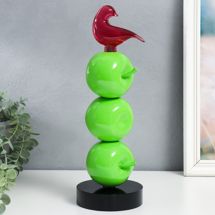 Сувенир полистоун "Птичка на трёх яблочках" зелёный 11,5х11,5х34 см