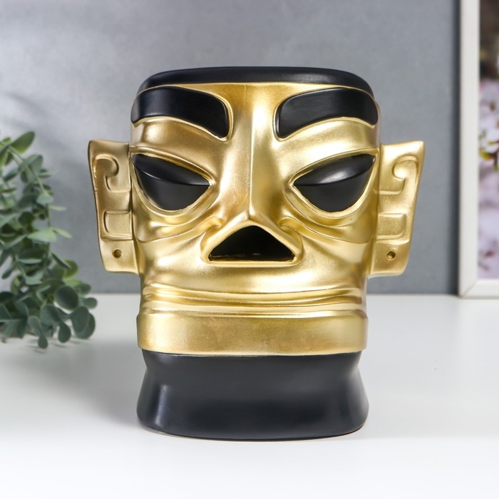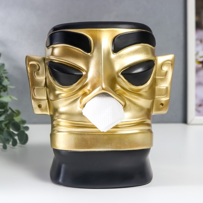 Сувенир полистоун салфетница "Абориген с острым носом" чёрно-золотой 19х12х20 см