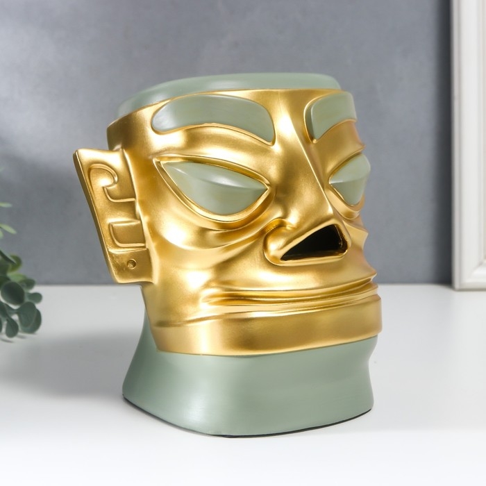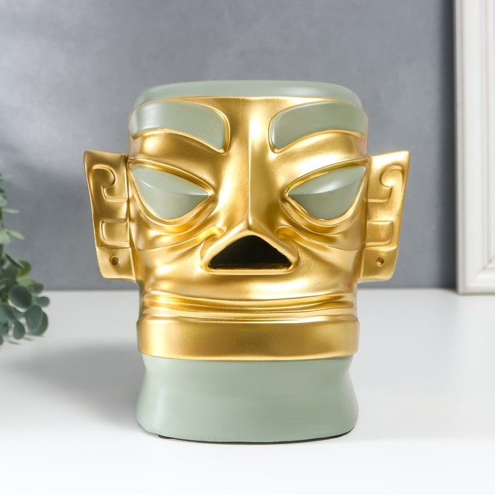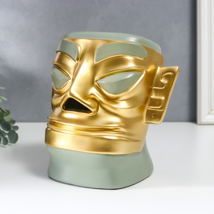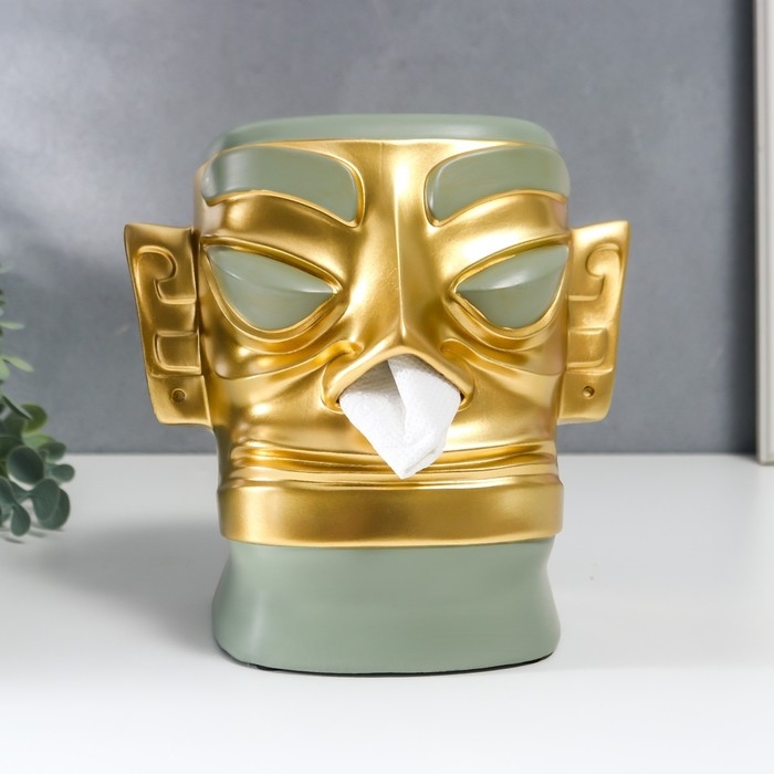 Сувенир полистоун салфетница "Абориген с острым носом" зелёно-золотой 19х12х20 см