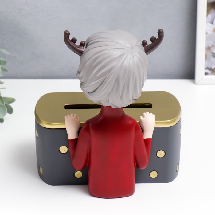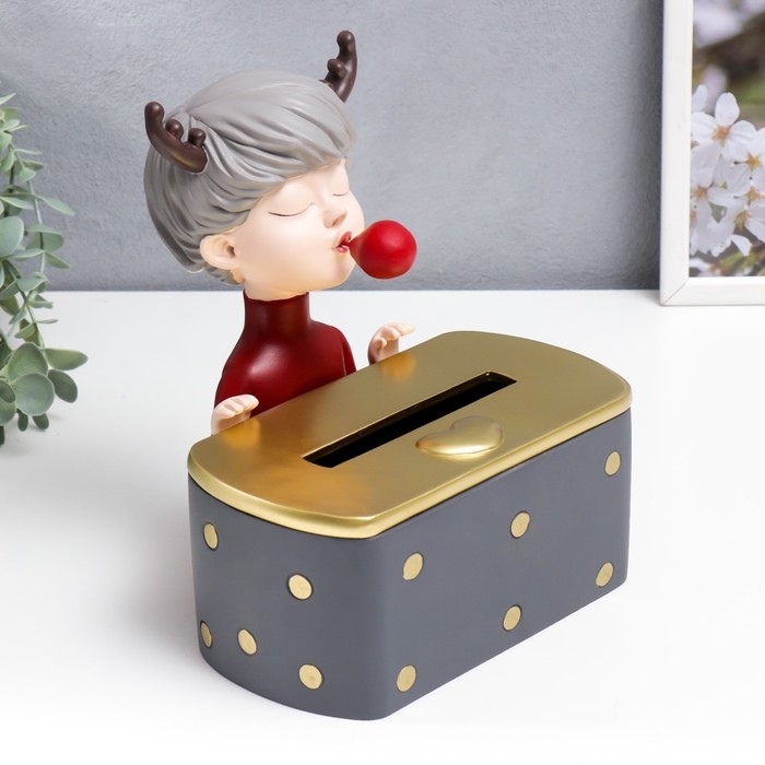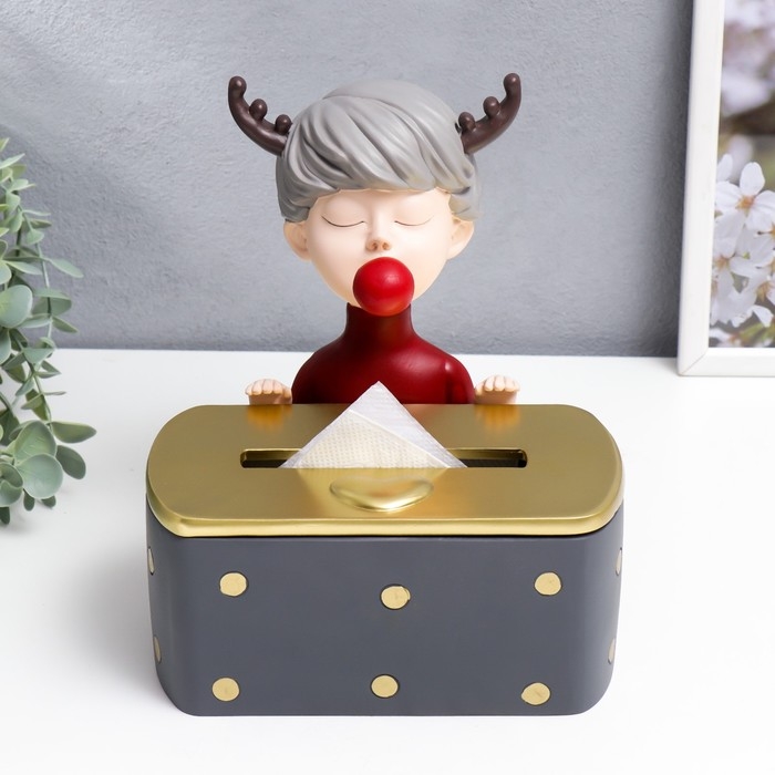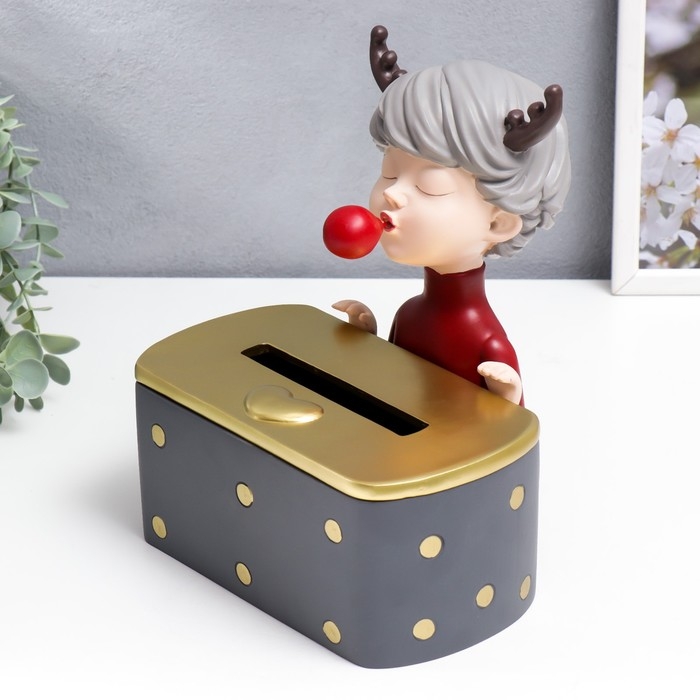 Сувенир полистоун салфетница "Девочка с оленьими рожками с красным пузырём" 22х26х19 см