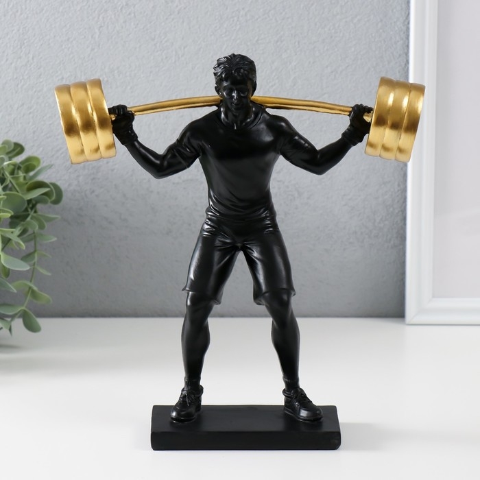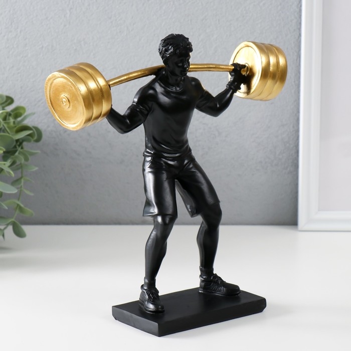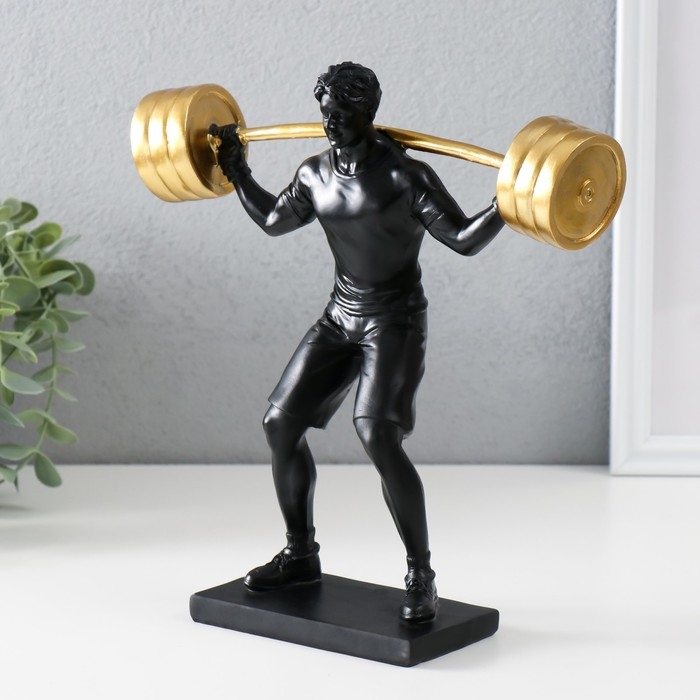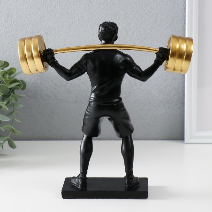Сувенир полистоун "Штангист" чёрный с золотом 23х8х25 см