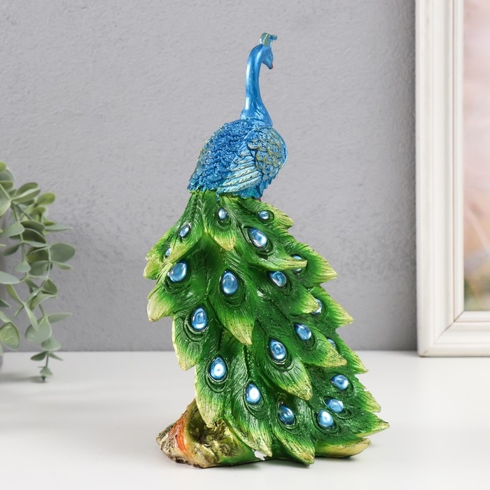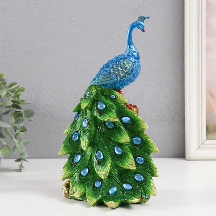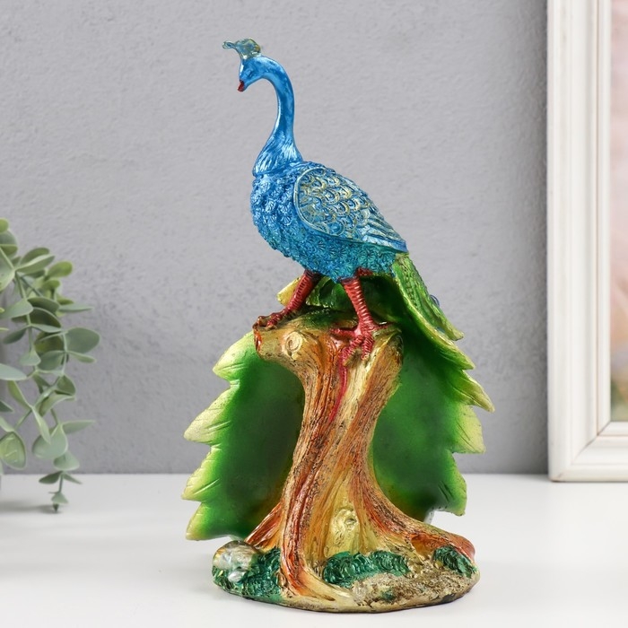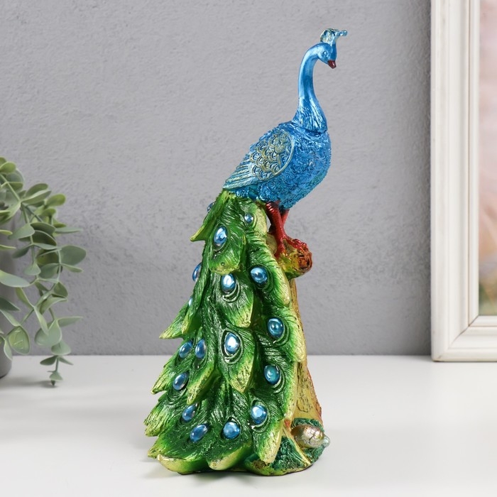 Сувенир полистоун "Синий павлин с зелёным хвостом" 12,5х14х25 см