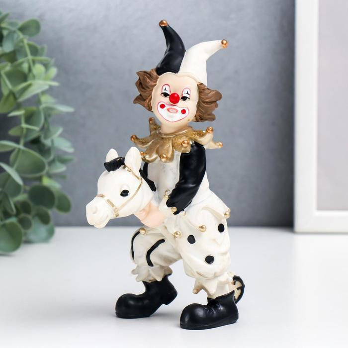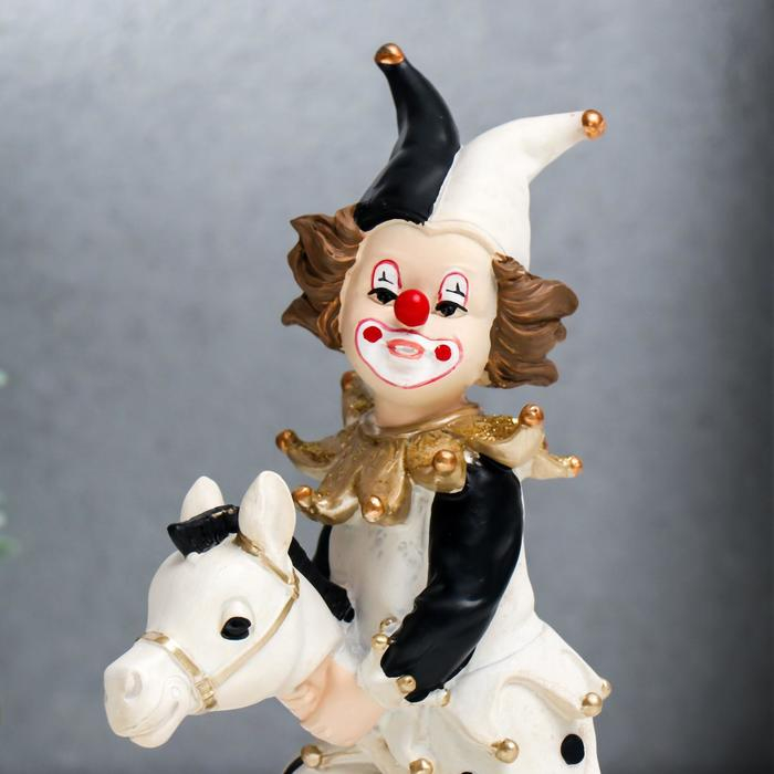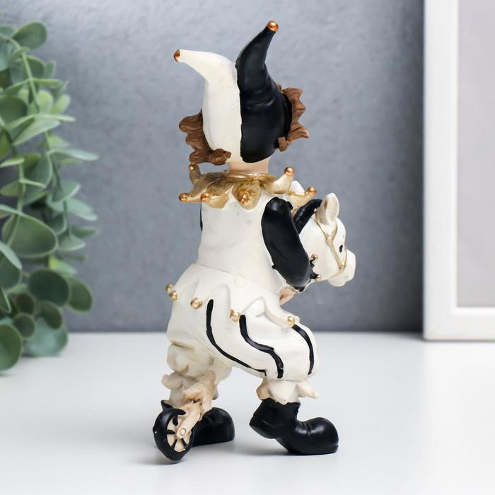 Сувенир полистоун "Скоморох с игрушкой голова лошади" чёрно-белый с золотом 16,5х6,5х11 см
