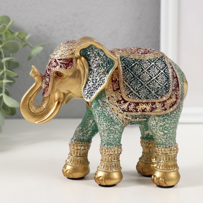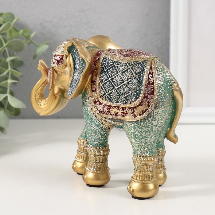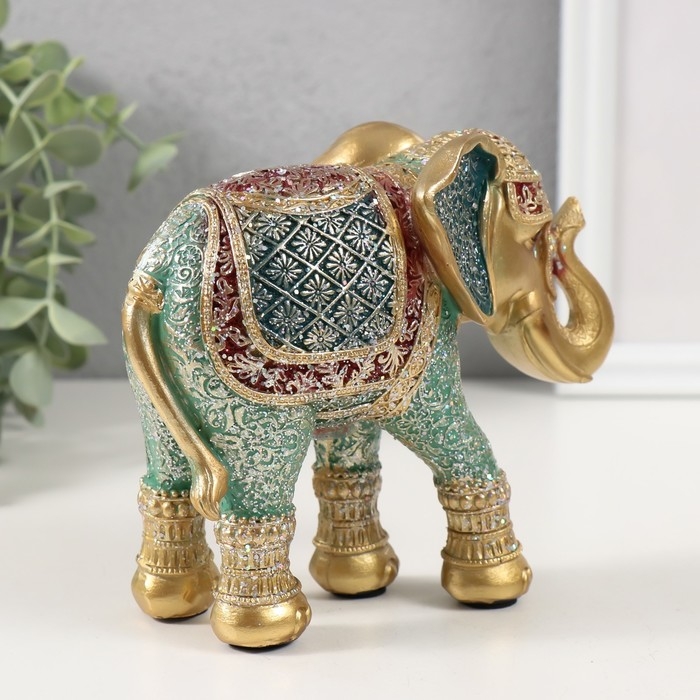 Сувенир полистоун "Слон, ромашки на попоне" красно-голубой, блёстки 15х6х12,5 см
