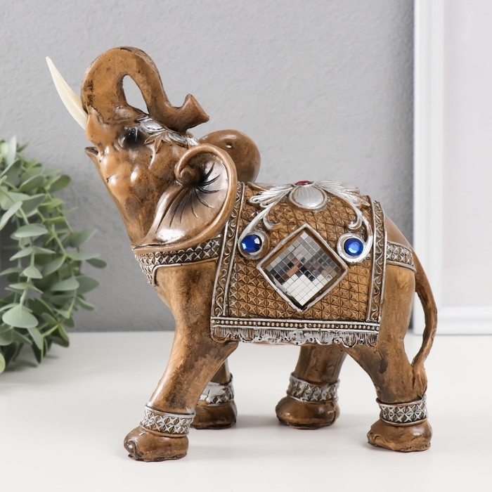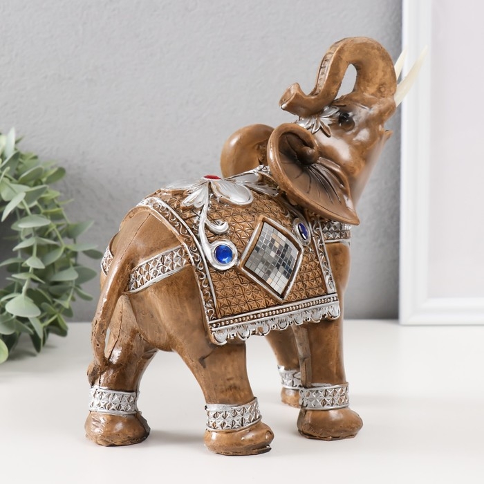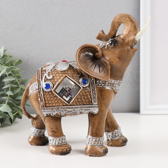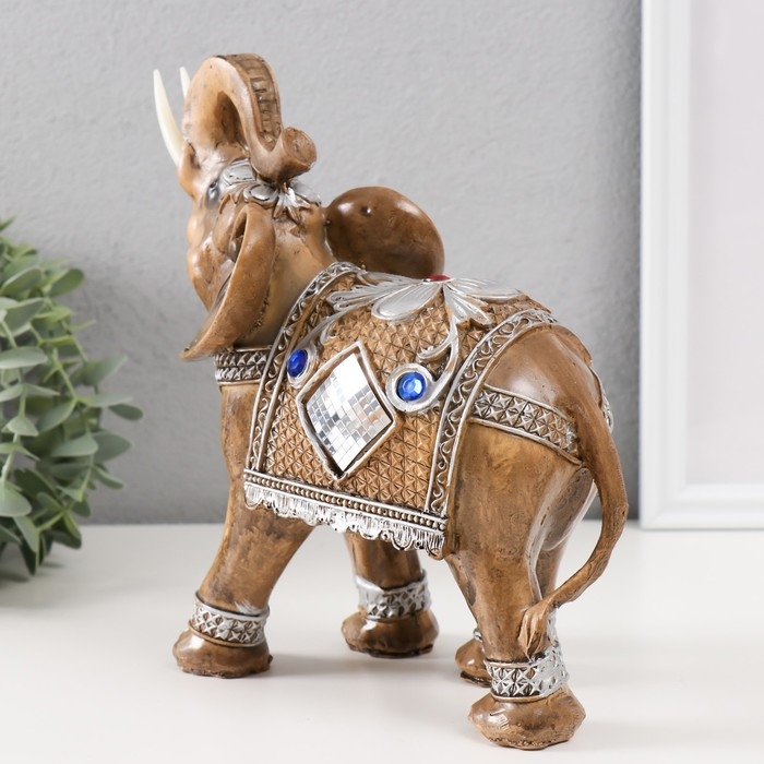 Сувенир полистоун "Слон в попоне-кольчуге с мозаикой и золотыми узорами" 21х9х19,5 см