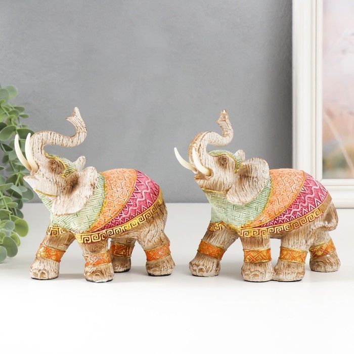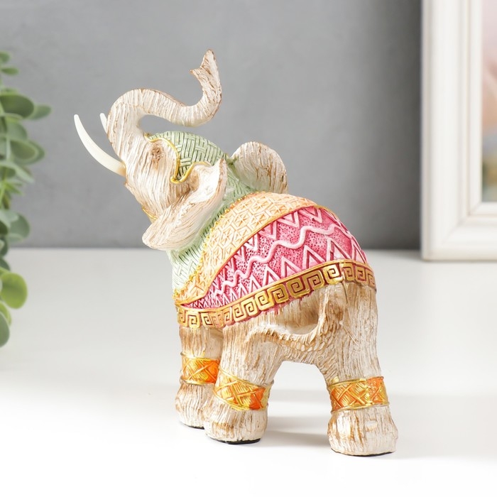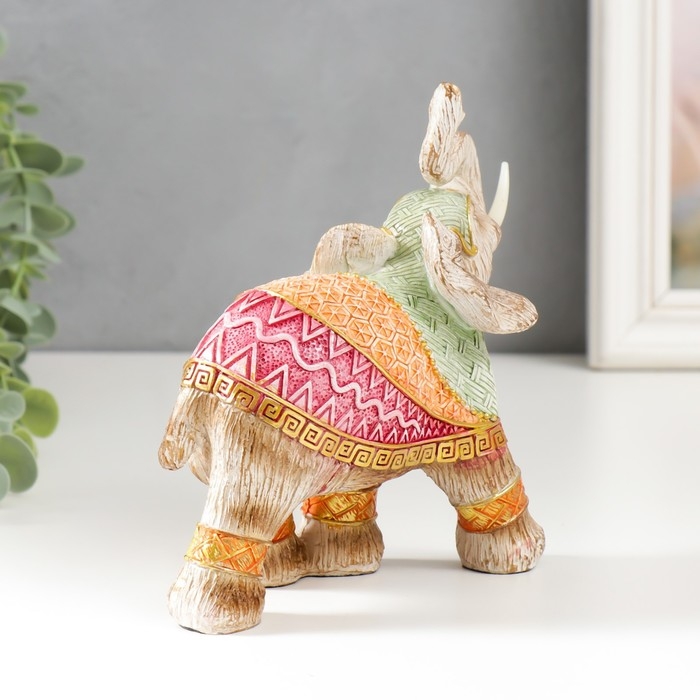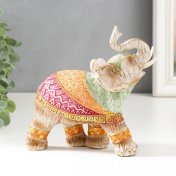 Сувенир полистоун "Слон в разноцветной попоне с рисунками" под дерево МИКС 15х16х7,7 см